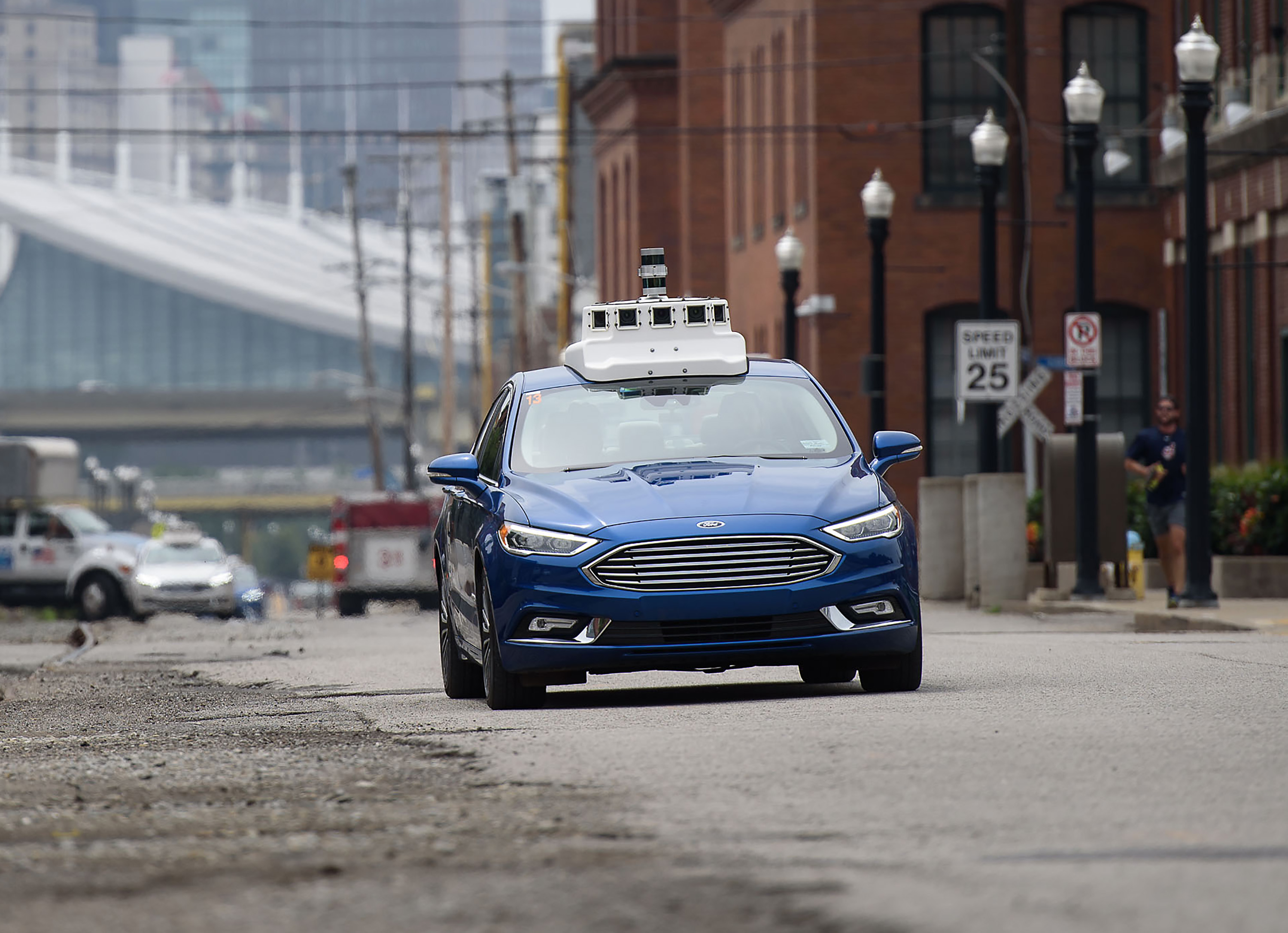 宾夕法尼亚州匹兹堡的 Argo AI 修改过的福特 Fusion 自动驾驶汽车。
