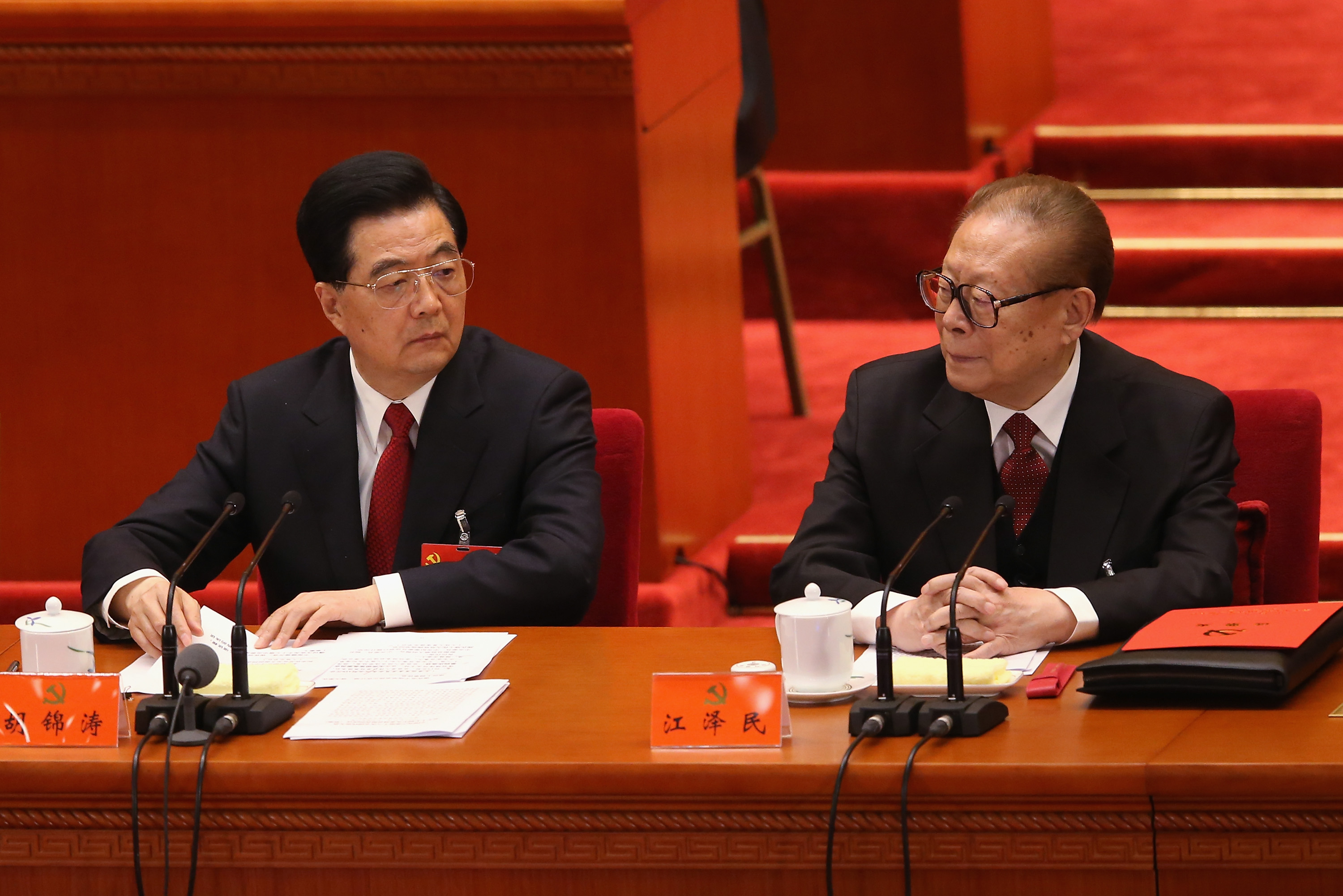 胡锦涛在2012年中国共产党第十八次全国代表大会闭幕会上与江泽民合影。摄影师:冯立/盖蒂图片社6. 文件