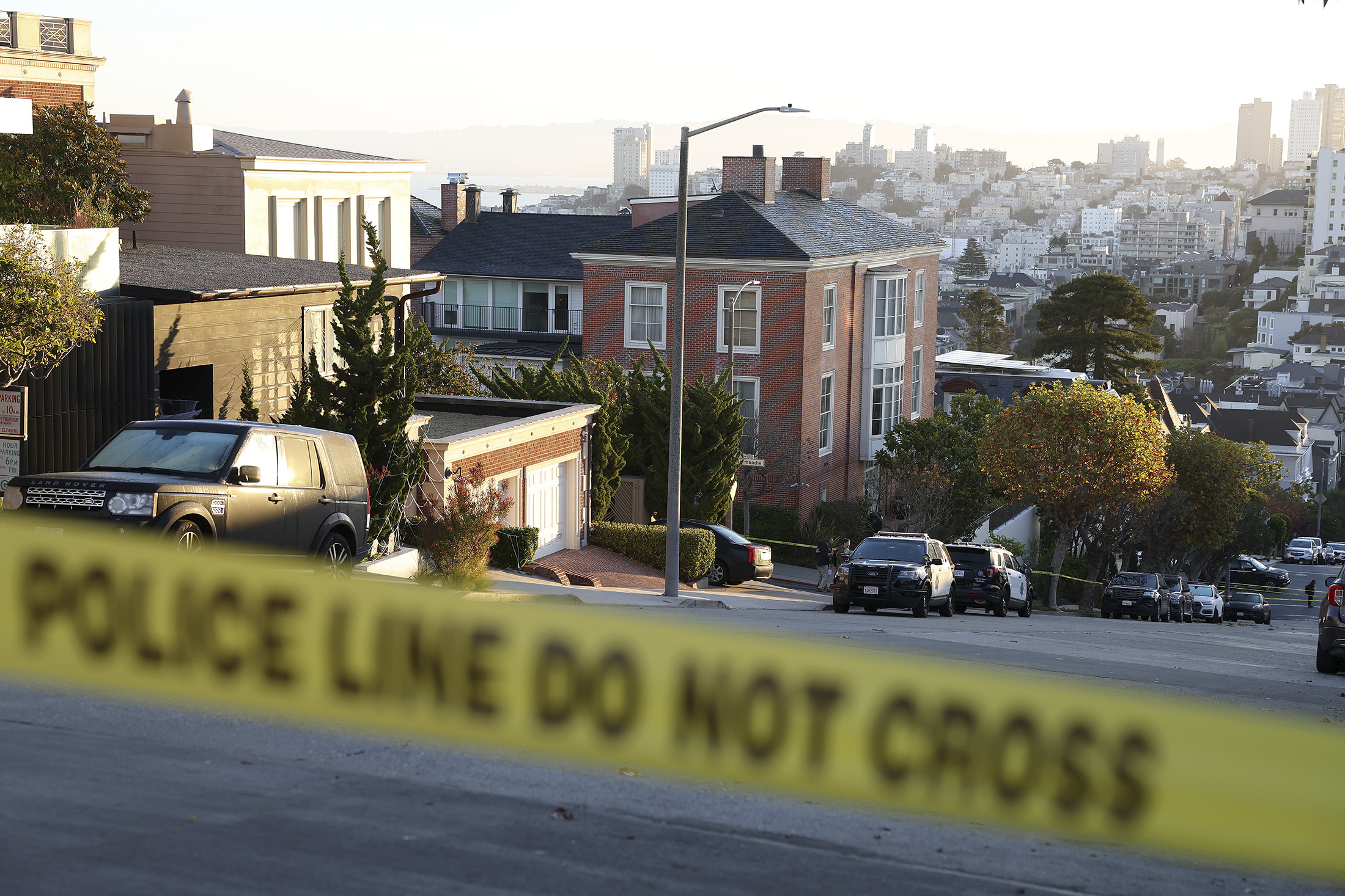 旧金山,10月28日,众议院议长南希·佩洛西(Nancy Pelosi)和保罗·佩洛西(Paul Pelosi)家附近的警戒线。摄影师:Justin Sullivan/Getty Images North America