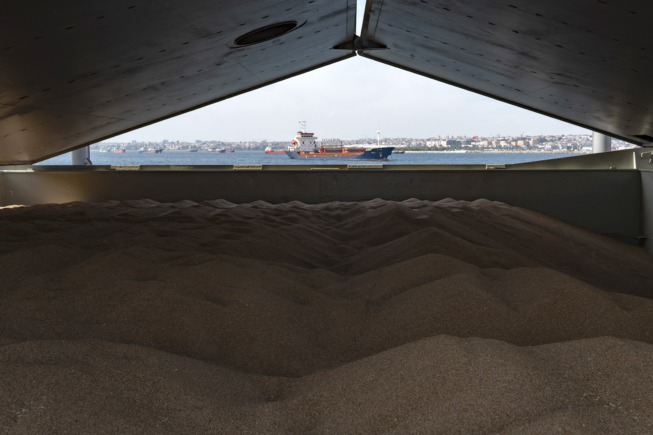 一艘装载着乌克兰谷物的船只停泊在土耳其伊斯坦布尔。