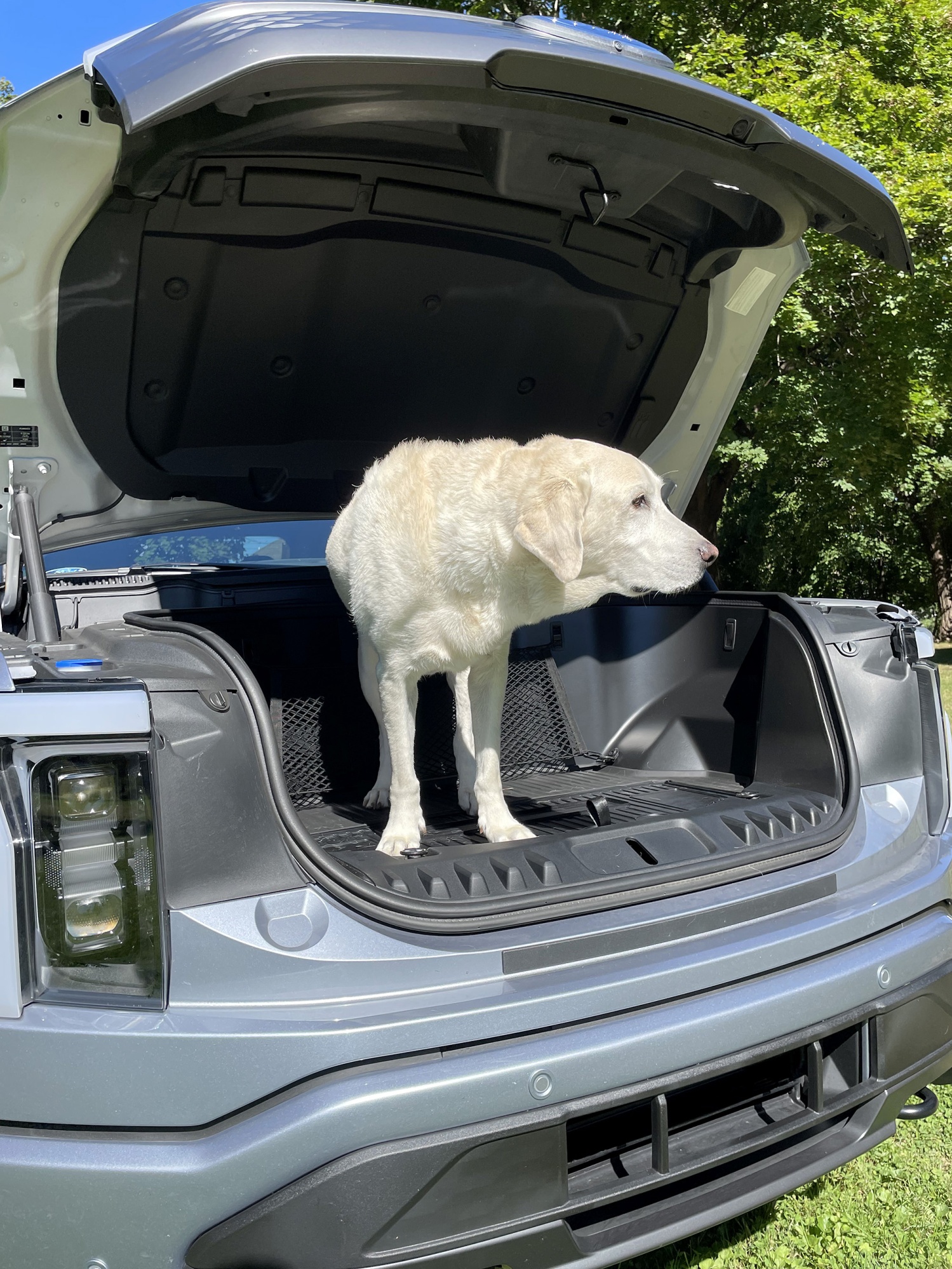 伍德罗(Woodrow)在一辆福特F-150 Lightning内,不情愿地参与了#frunkpuppy社交媒体趋势。摄影师:凯尔·斯托克(Kyle Stock)/彭博社制作YouTube系列《工程解析》的杰森·芬斯克(Jason Fenske)表示,宝马i4没有前备箱是最令人沮丧的事情,主要是因为引擎盖下有足够大的空间可以放一个滚动箱。最令人沮丧的事情。