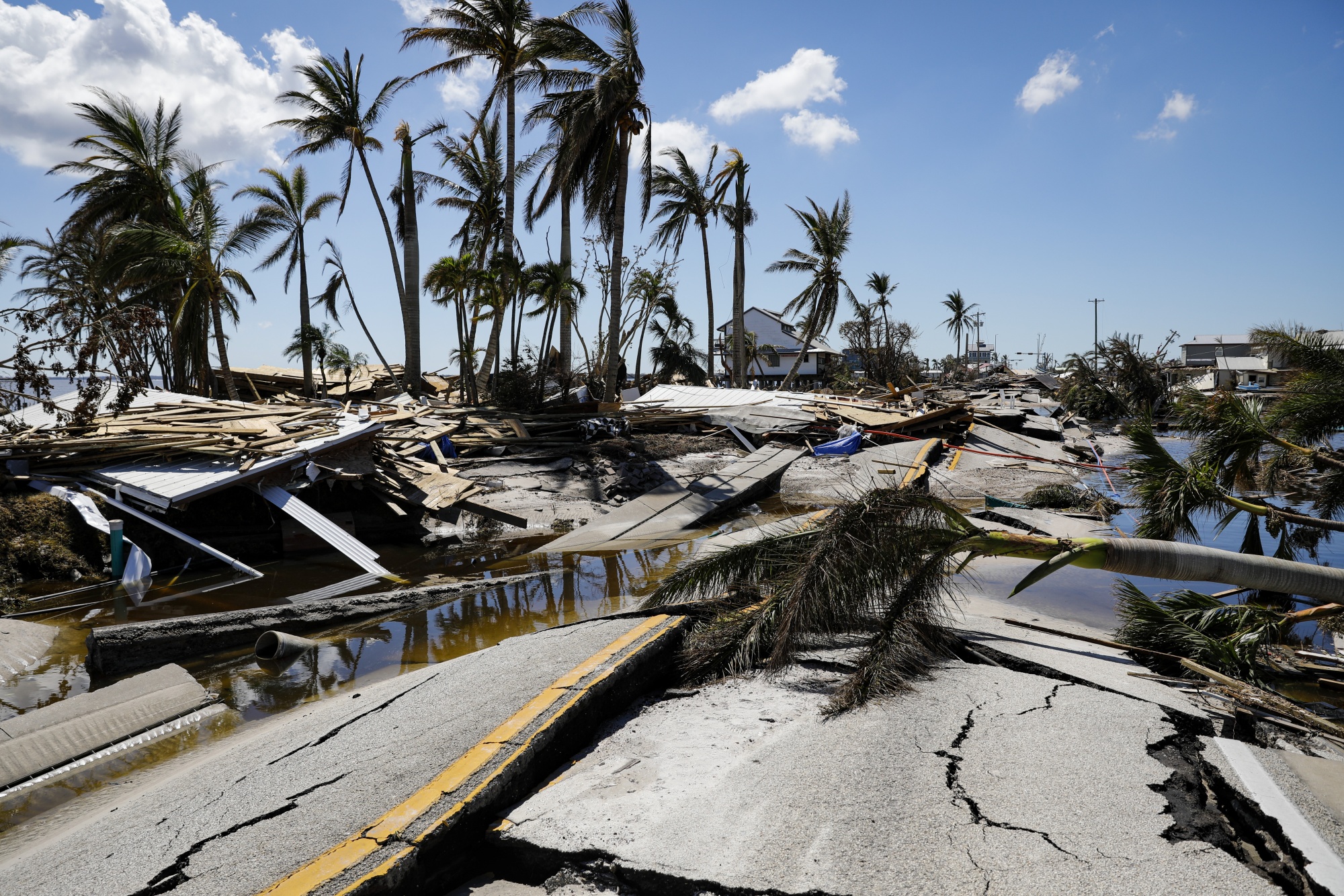 2022年飓风伊恩袭击佛罗里达马特拉查艾尔斯的毁坏的松树岛路。来源:彭博社装备有摄像头和传感器的虎鲨帮助海洋科学家识别和测量有史以来记录的最大海草生态系统。