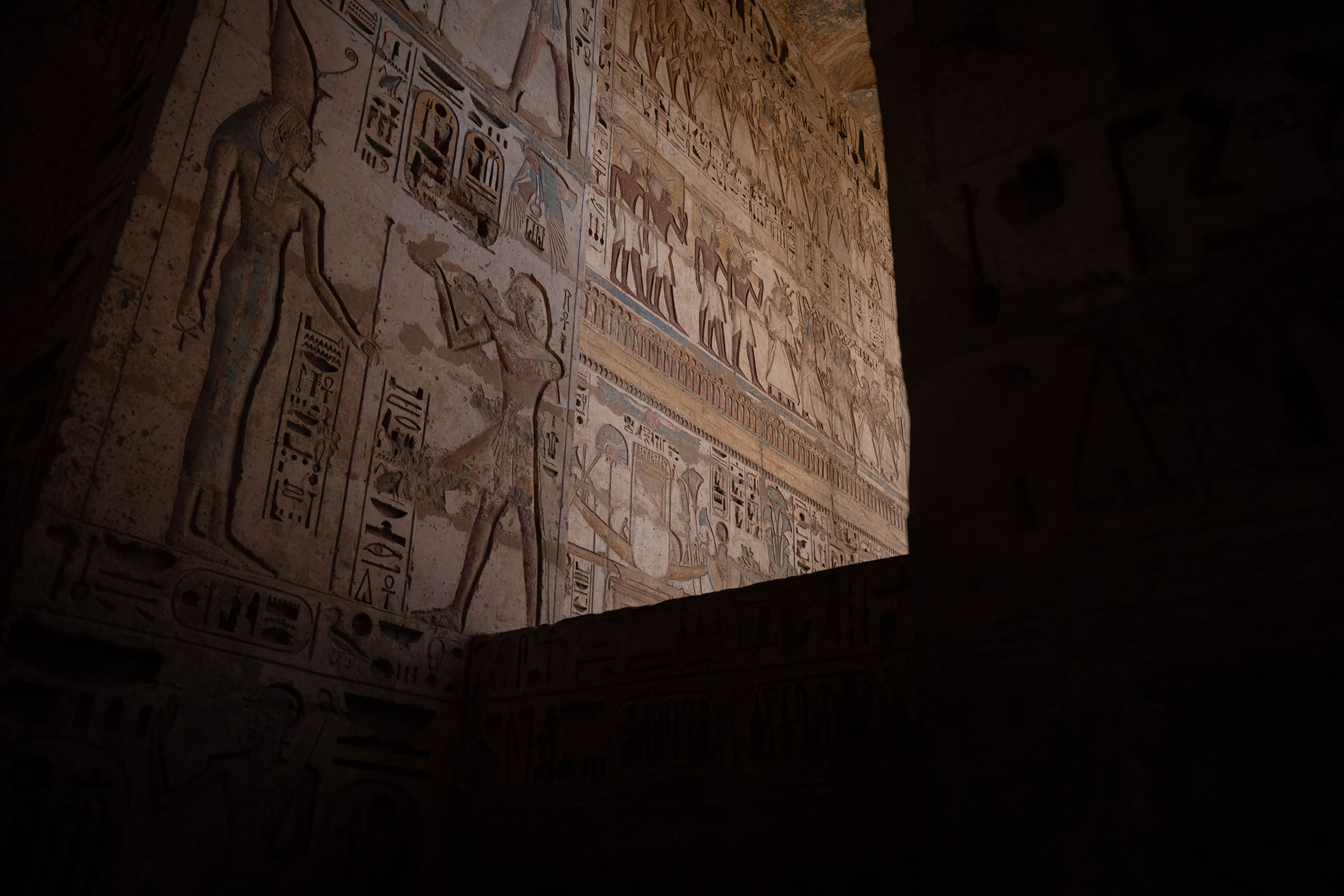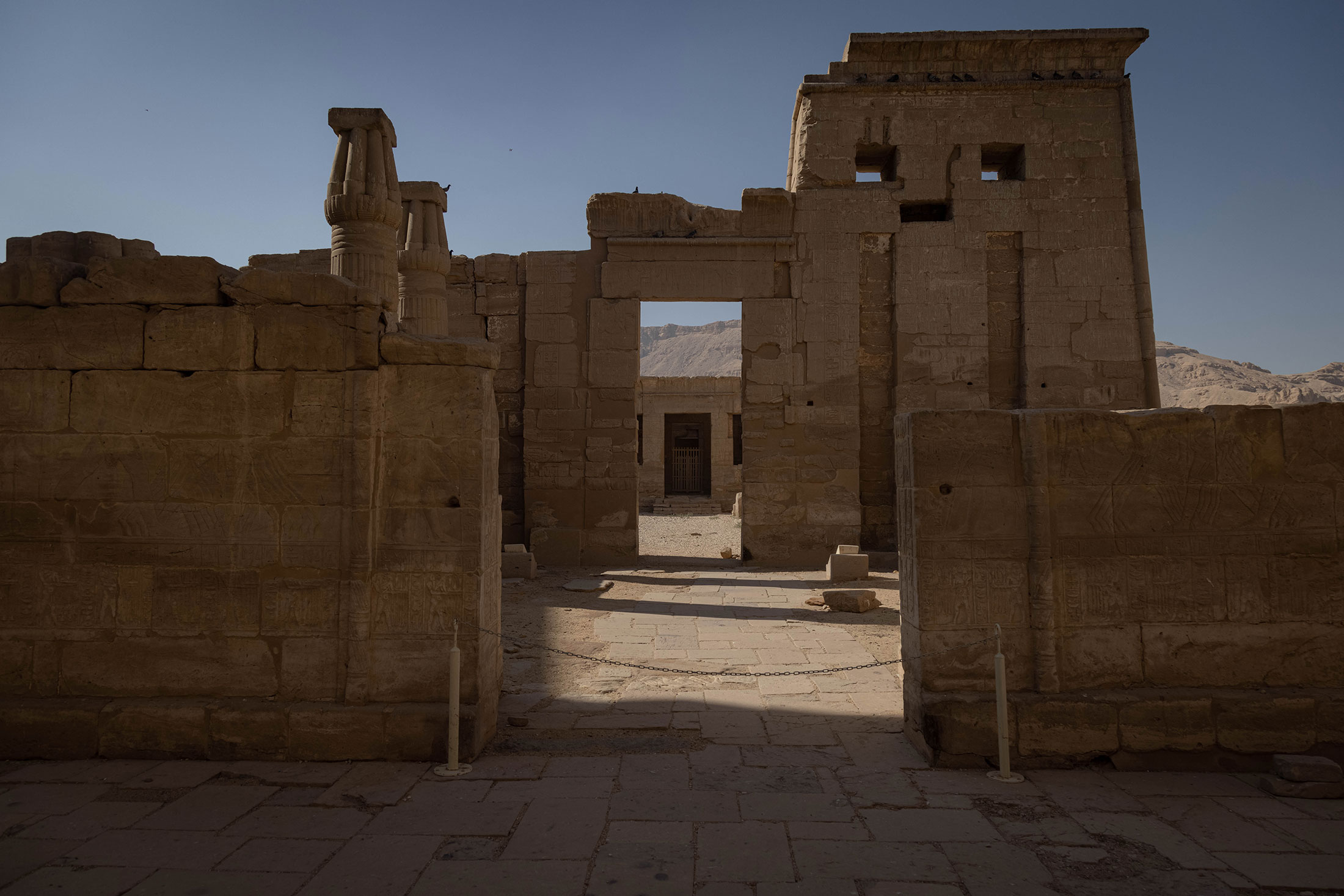 卢克索哈布神庙的象形文字。摄影师:Sima Diab(彭博绿色)芝加哥大学东方研究所象形文字调查项目的高级象形文字学家布雷特·麦克莱恩表示,前所未有的湿度正在慢慢腐蚀古代建筑的基础。该项目已经在卢克索的梅迪内特·哈布复合体中工作了近一个世纪,过去十年里,在包括卢克索西岸的卡纳克神庙复合体以及埃斯纳、埃德夫和科姆奥姆博等附近遗址的重要遗迹上安装了排水系统。麦克莱恩表示,这些努力已经显著减缓了腐蚀的速度。现在,考古学家们正在努力修复受损处。