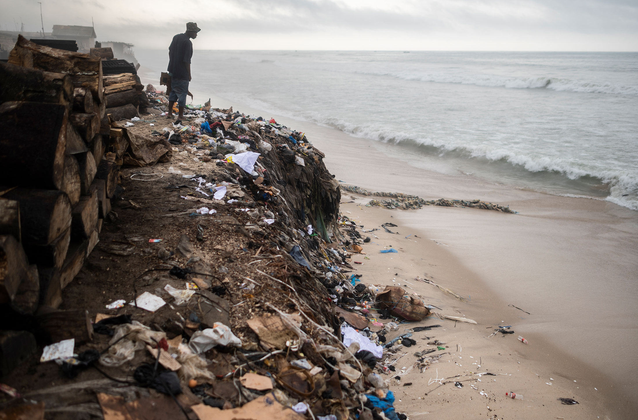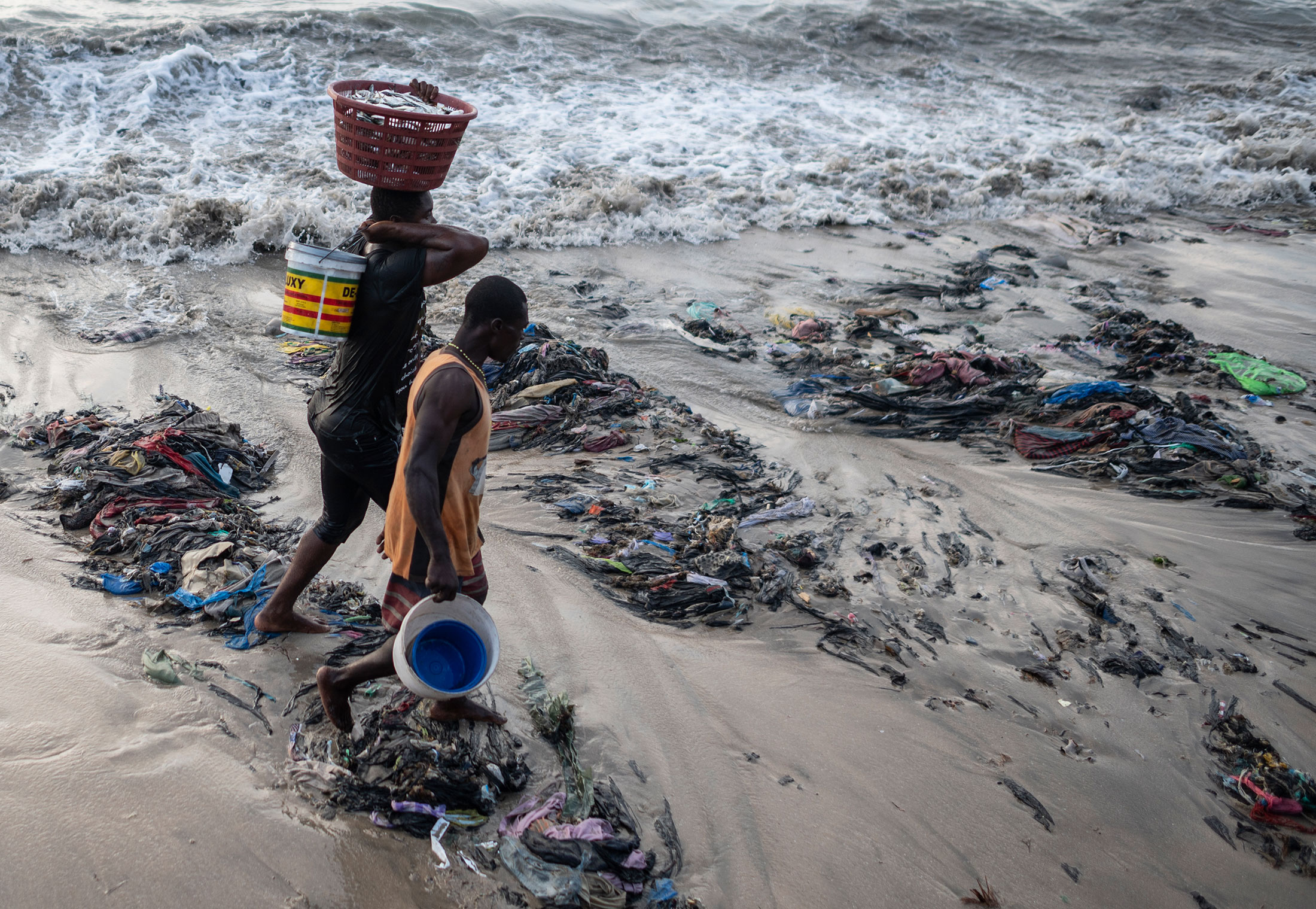 在靠近首都阿克拉的乔科尔海滩,一层又一层的富裕国家的废弃物形成了一堵超过6英尺高的墙,就像来自不同时尚时代的地层。这里露出一只卡骆驰凉鞋,那里是一件蓝色的拉尔夫·劳伦Polo衫,再往下一点是一只红色的维多利亚的秘密文胸。这个腐臭的堆积物如此坚固,以至于小屋建在上面,一个贫民窟真的建在了一堆破布的基础上。