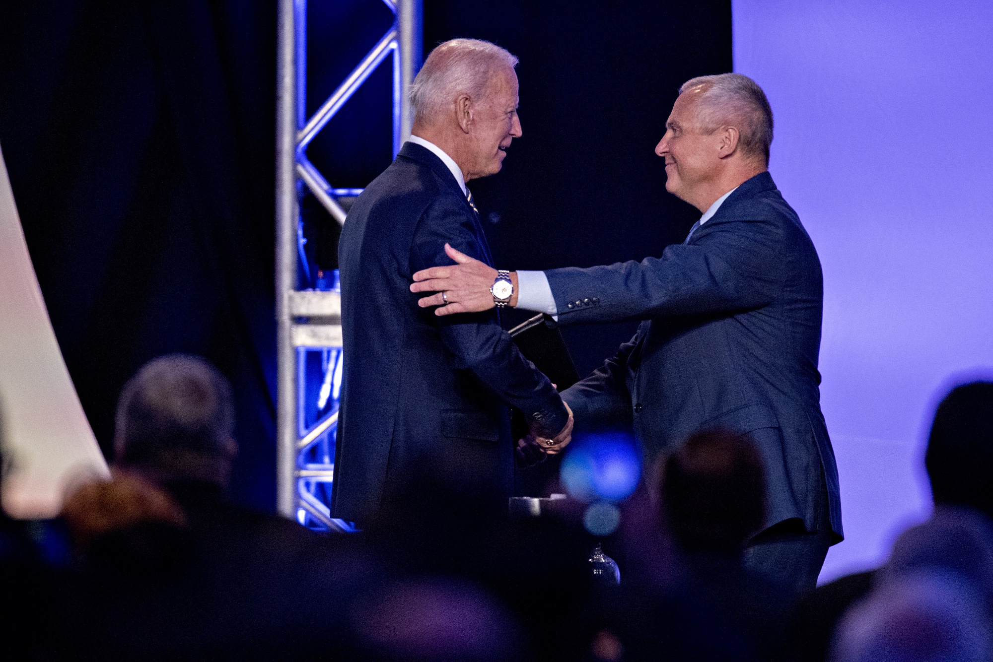 乔·拜登,左,和洛尼·斯蒂芬森在2019年。摄影师:安德鲁·哈勒/Bloomberg