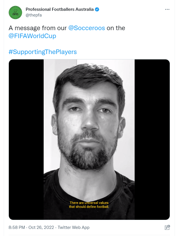 在英国,一位政府部长上周引发了强烈反对,当他要求LGBTQ粉丝“尊重”东道国时。这是在卡塔尔警察阻止驻英国的活动人士彼得·塔切尔在多哈举行一人示威活动抗议LGBTQ人士受到的待遇后发生的 — 该国不容忍任何形式的公开抗议或对国家的质疑。随后,澳大利亚足球队发布了一段视频敦促卡塔尔废除同性恋罪行。