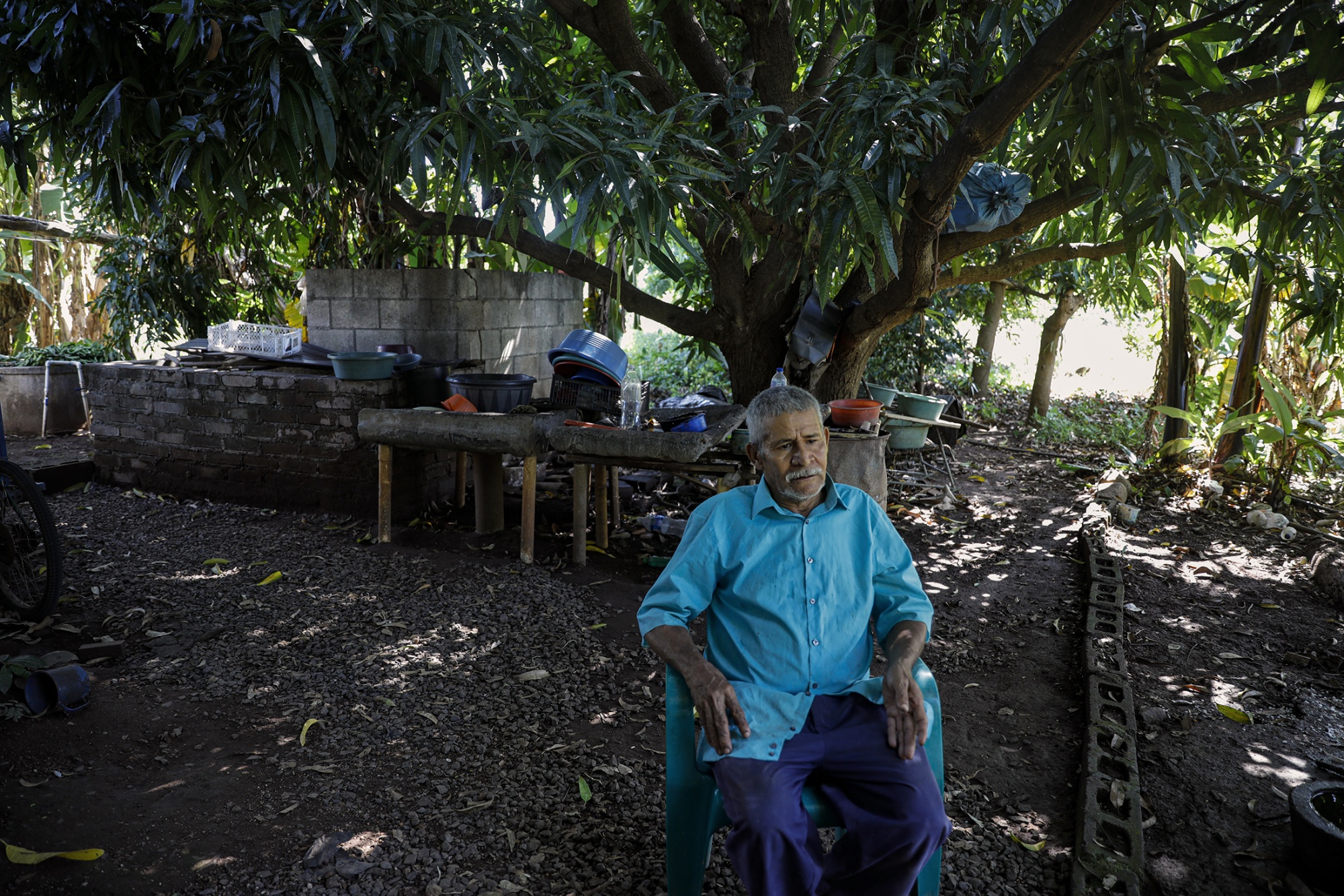 今年早些时候,政府工作人员来到这片森林,用橙色油漆在一些树上标记了字母和数字。领导当地合作社的芒果种植农艾尔默·马丁内斯说,他们告诉他,这些标记表示哪些农场将被萨尔瓦多总统纳伊布·布克莱支持的一个开发项目拆除。“我们不能离开,因为我们没有其他地方可去,”马丁内斯告诉我,一边炫耀着一颗装饰性的金牙。他坐在自己15年前种下的一棵巨大芒果树的阴凉处。他身边放着桶,里面装着他九棵树的嫁接苗,以备被迫离开土地时带走。“我们是靠大自然、靠田地生存的穷人,”他说。