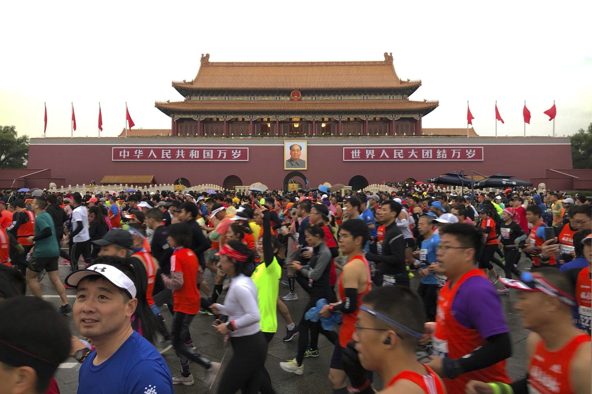 2019年北京马拉松比赛中的天安门广场附近的跑步者。摄影师:马克·谢菲尔拜恩/AP照片“尽管准备时间很短,我的状态可能不如以前好,但举办比赛还是好事,”49岁的办公室职员陶展说,他六年前开始参加马拉松比赛,并在2019年芝加哥马拉松赛中打破了三小时的成绩。“这对跑步者来说是非常好的消息。”