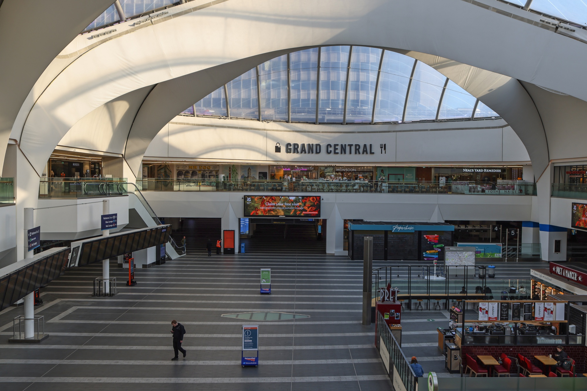 伯明翰新街火车站在10月1日三家铁路工会罢工期间的近乎空荡的大厅。