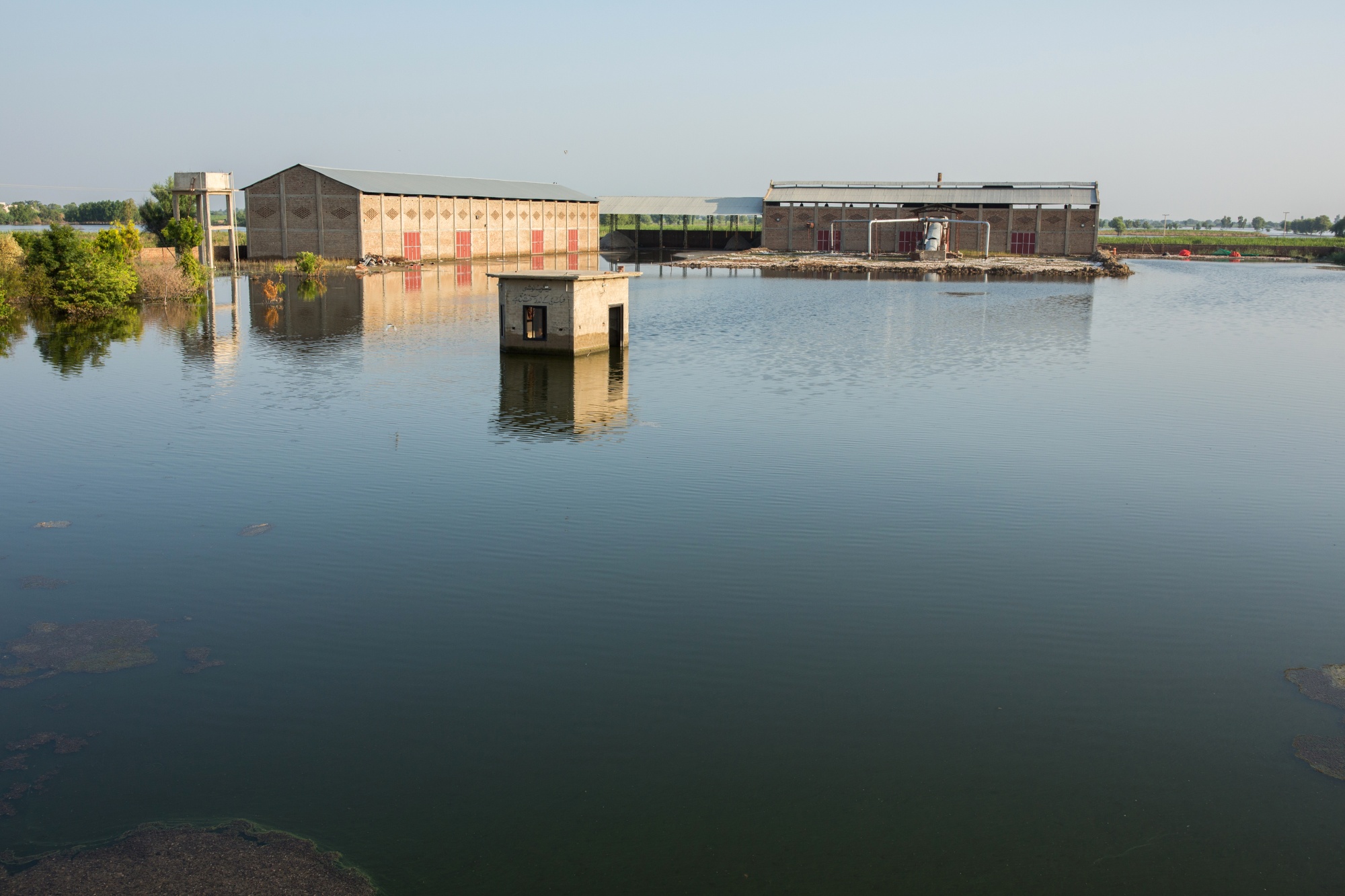 洪水包围了巴基斯坦信德省的一座磨坊,时间是九月。