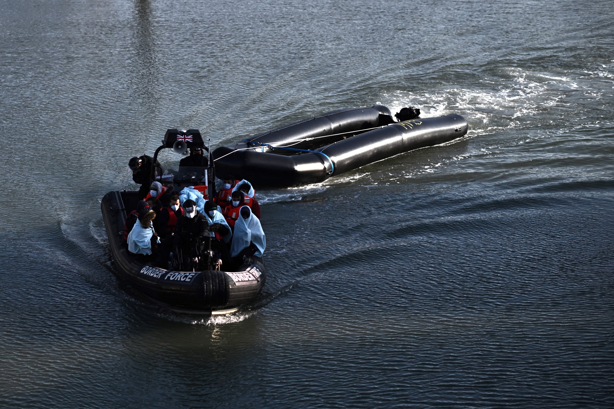 尝试穿越英吉利海峡在多佛被拾起的移民于四月。