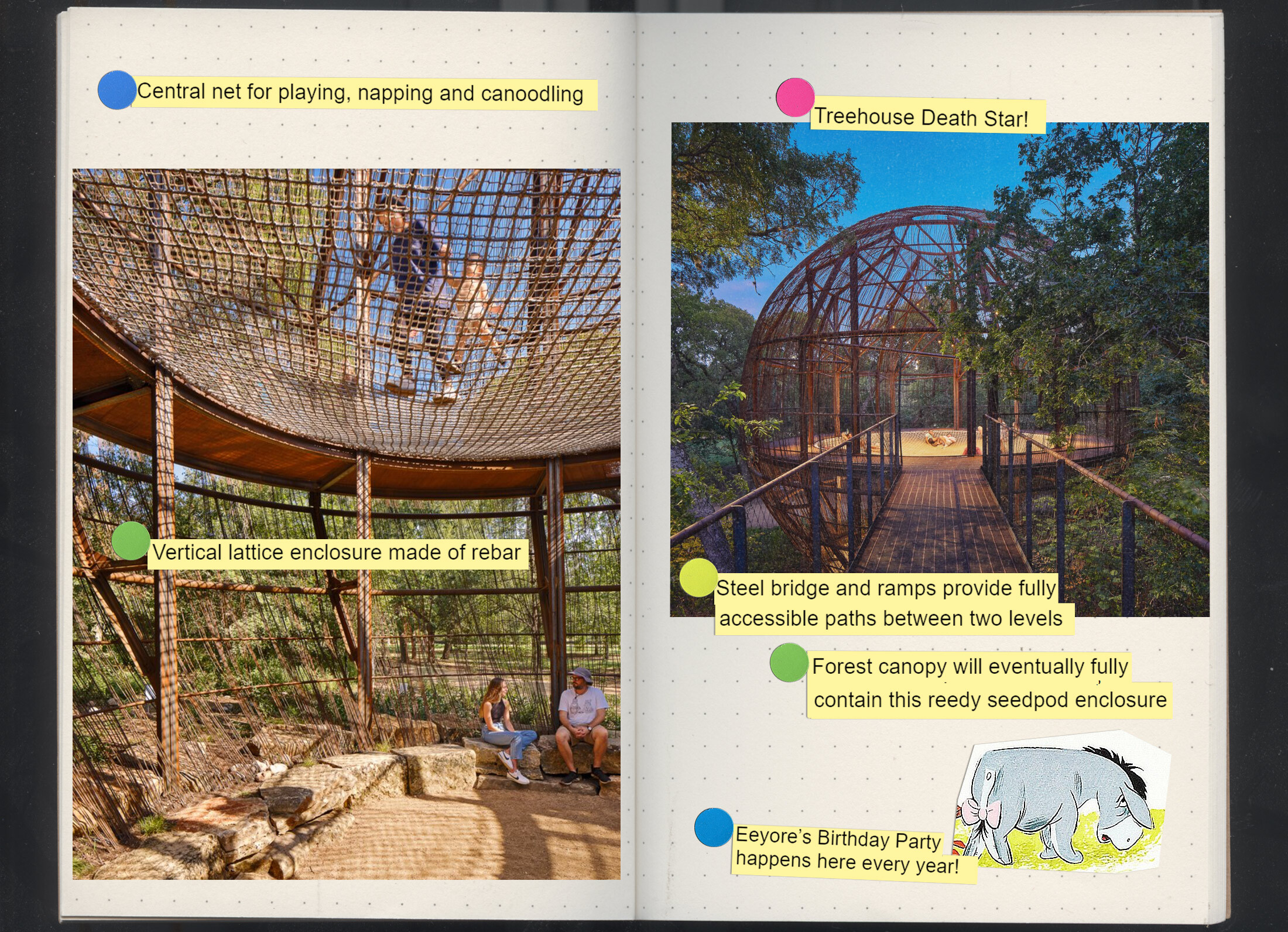 在短时间内,这座树屋已经在奥斯汀取得了标志性地位。最终,森林将会吞噬它。尽管皮斯公园的恢复计划清除了许多侵入物种和下生长物,但树冠终将吞噬它的“死星”,使其成为一个更加隐秘的避难所。