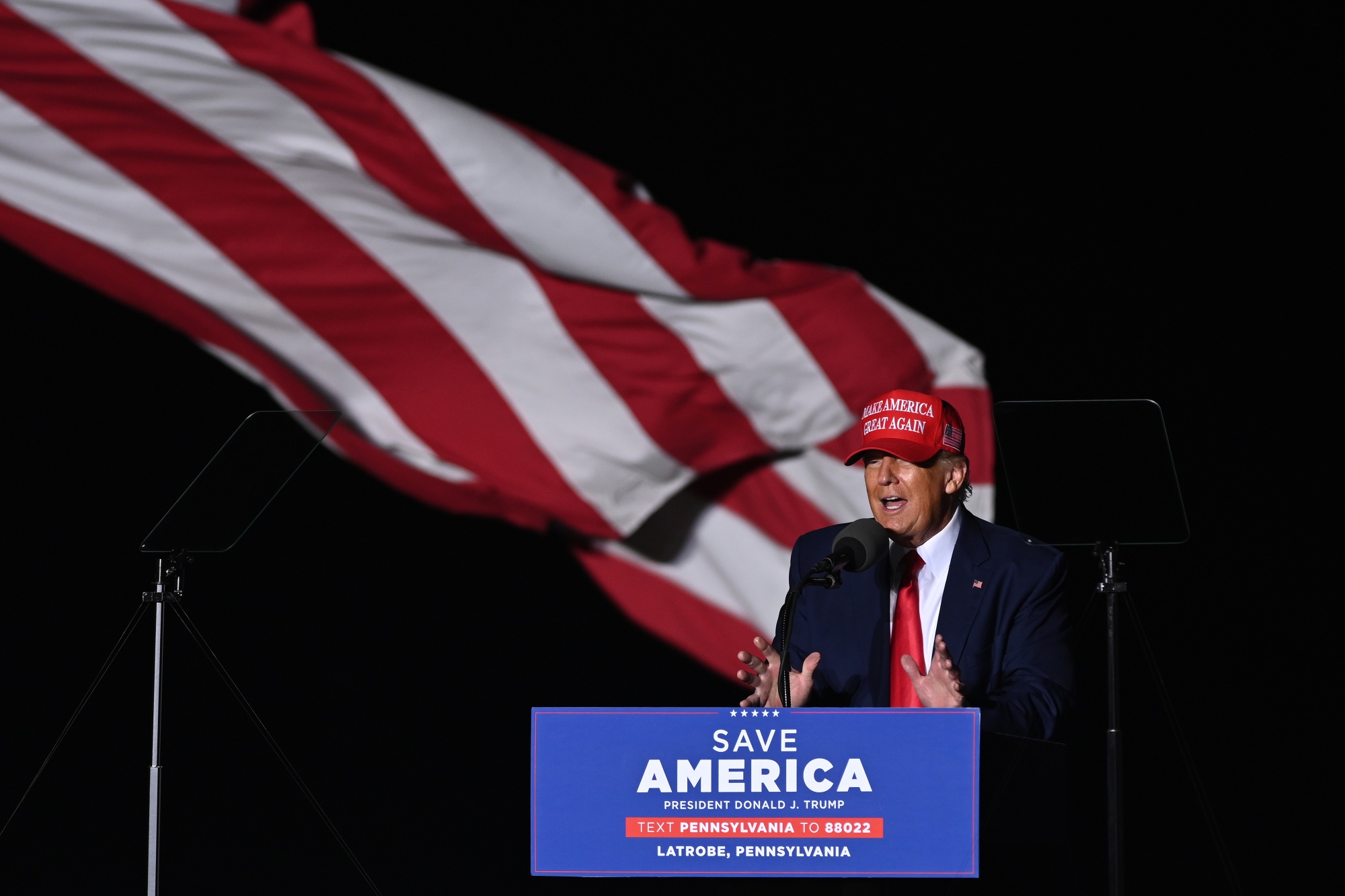 唐纳德·特朗普在拉特罗布的竞选集会上,11月5日。