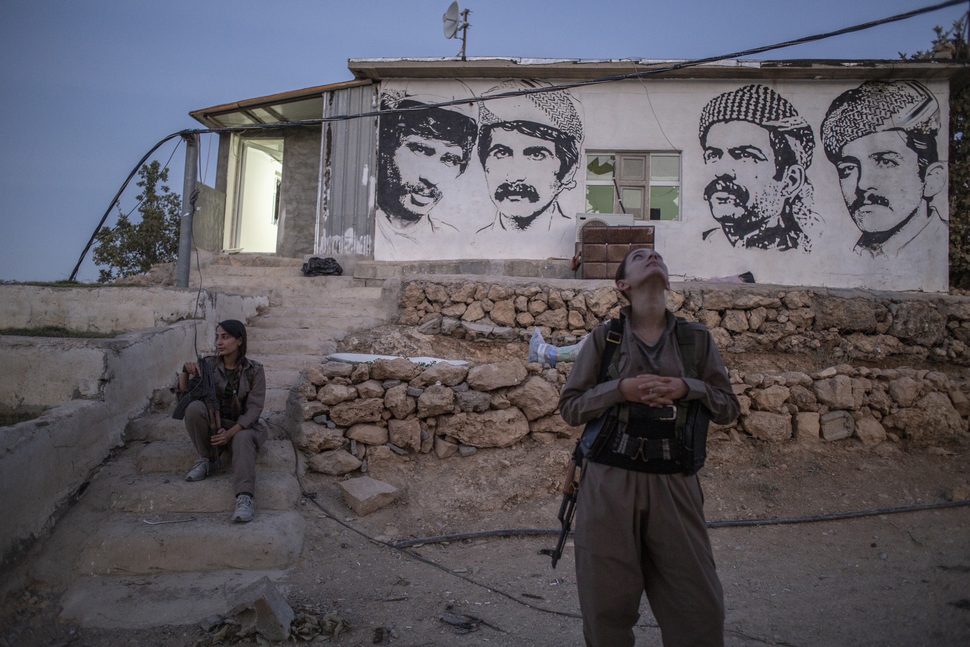 伊朗库尔德斯坦革命劳动者Komala成员在伊拉克苏莱曼尼亚观察无人机,时间为10月3日。