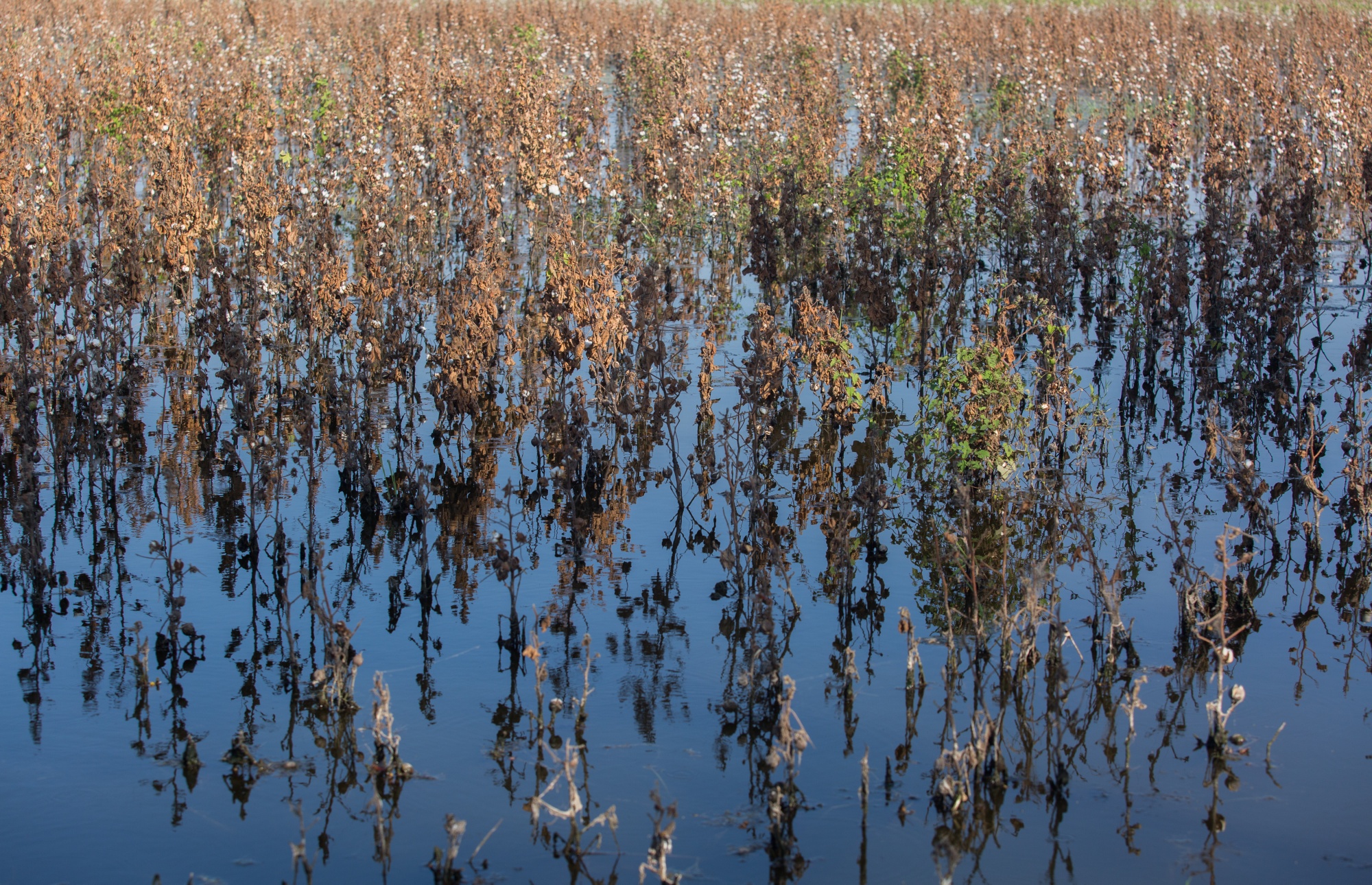 巴基斯坦信德省的被淹没的棉田,2022年9月9日。大约45%的巴基斯坦棉花作物在导致约1700人死亡的洪灾中被摧毁。