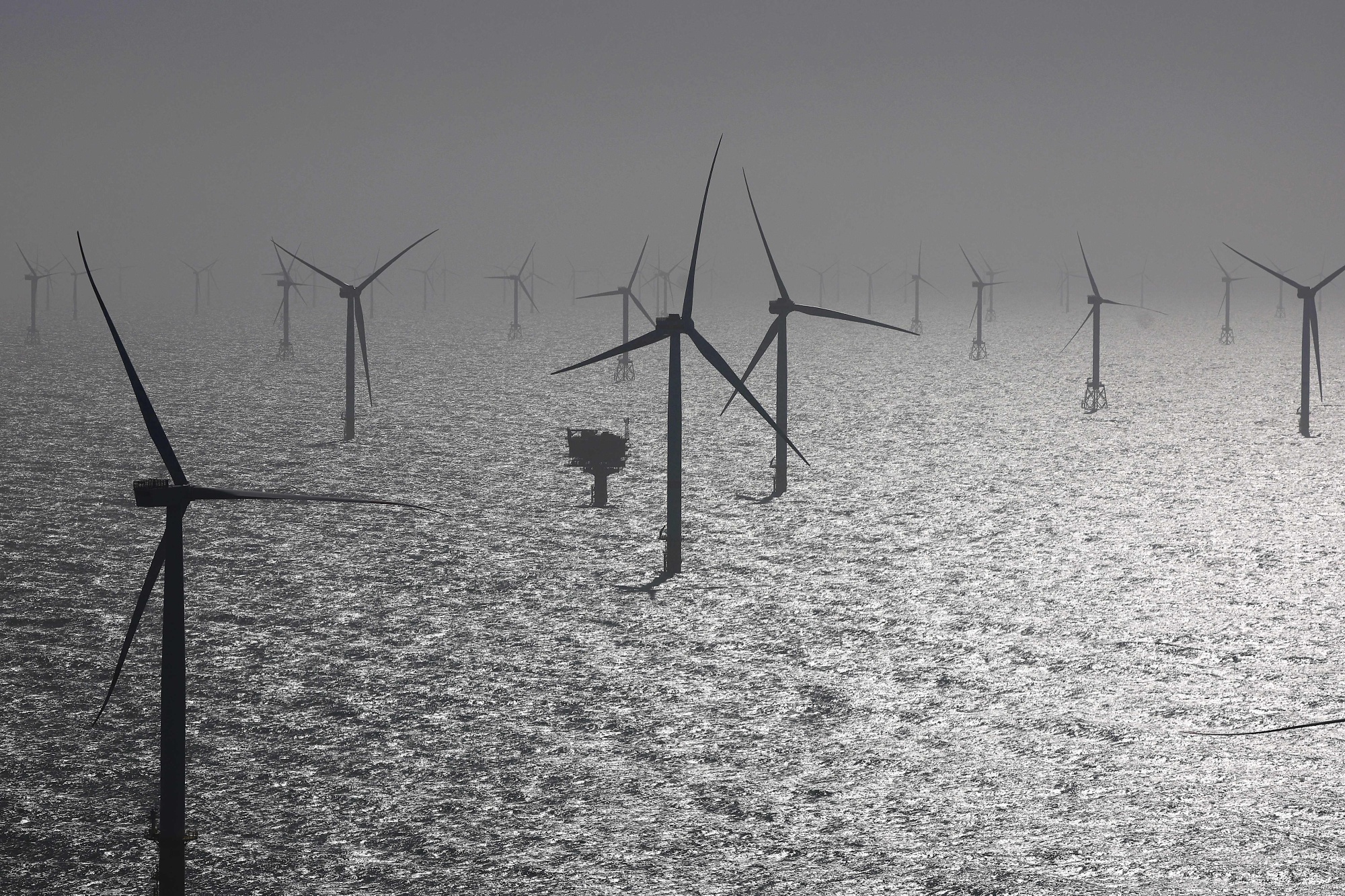 德国赫尔戈兰岛海岸的风力涡轮机。