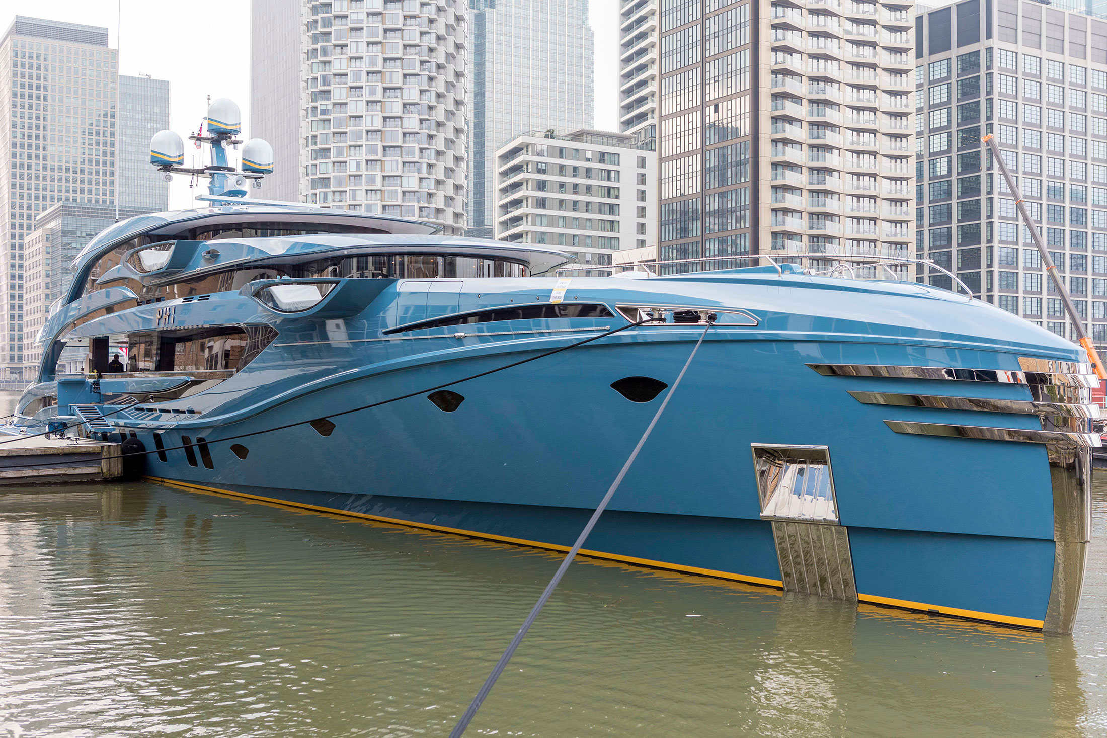 Phi在伦敦金丝雀码头。摄影师:贝琳达·焦/阿拉米在伦敦金丝雀码头的高楼大厦迷宫之外,坐落着狗岛,伦敦的金融区,那里是一个旧的码头区,停泊着一艘名为192英尺的蓝色超级游艇Phi。自三月底以来,它一直停泊在泰晤士河的一个宁静入口处。Phi的所有者谢尔盖·诺门科是一位俄罗斯房地产开发商和食品进口商,没有被列入任何制裁名单。但战争爆发后不久,英国交通部颁布了一项异常广泛的法规,允许阻止任何与俄罗斯有关联的人拥有、运营或控制的游艇或飞机。