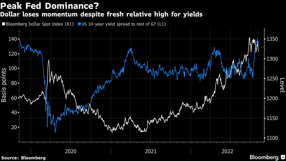 美国国债相对于其他七国集团的溢价刚刚触及三年高点,但彭博的美元指数在两天内下跌了2%。这可能是投资者在周二的中期选举和周四公布的十月消费者价格指数数据之前对投资美国资产持谨慎态度的原因,或者是对即将到来的转变的预期日益增长,尽管美联储发表了鹰派言论,但也伴随着一些担忧,即决策者的鹰派立场将导致新一轮波动。