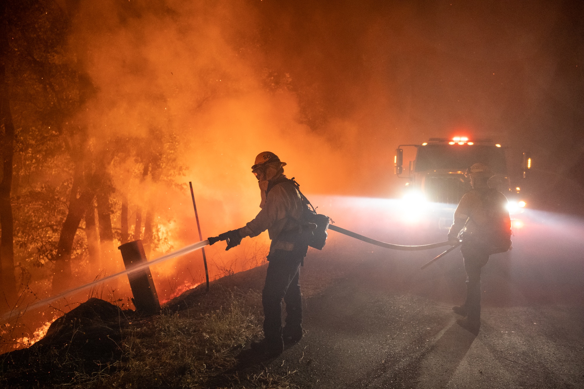 一名消防员试图在加利福尼亚Foresthill附近的蚊子山大火中扑灭火势,时间是9月7日。由于气候变化,干旱和其他天气事件变得更加严重。