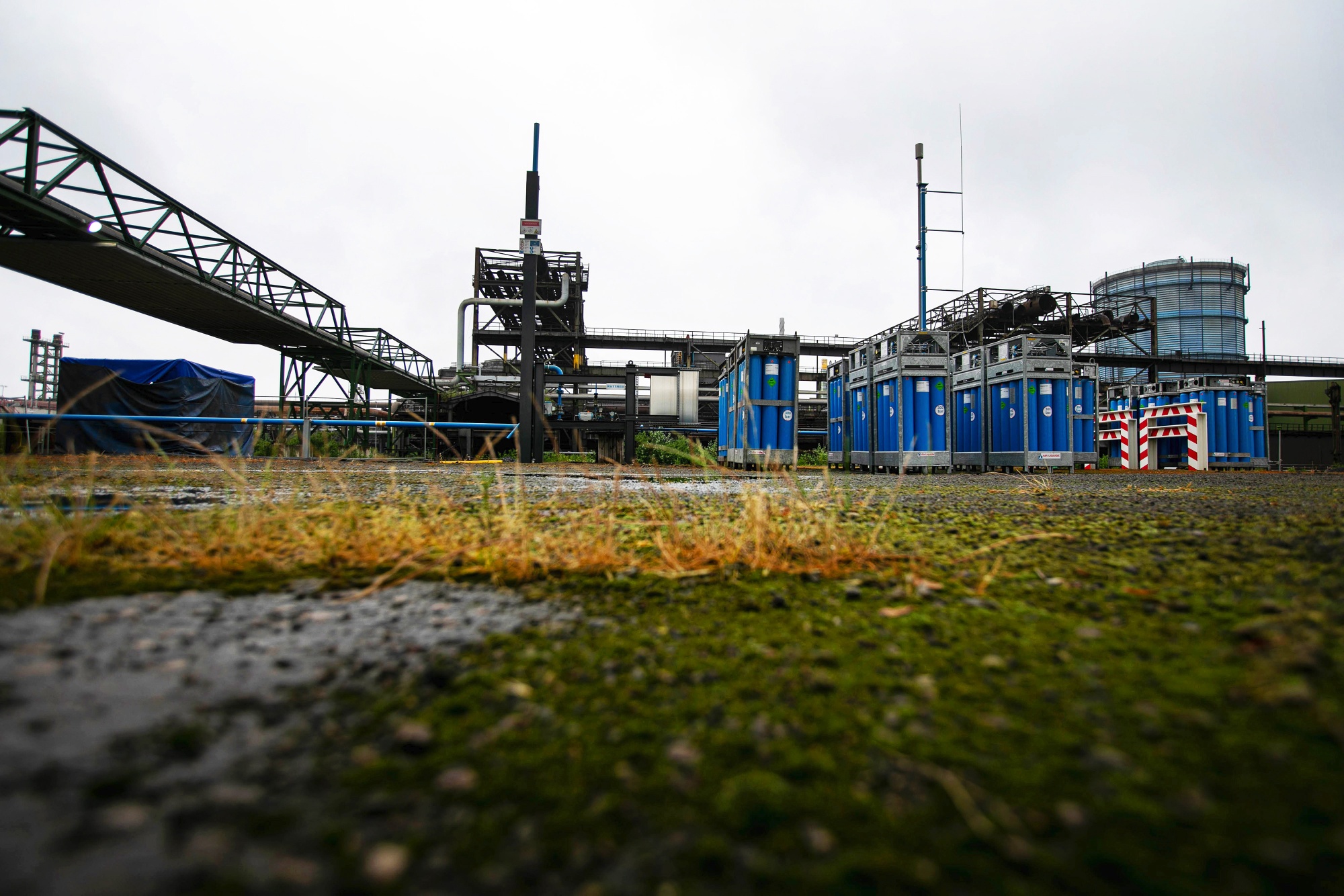 德国杜伊斯堡的氢气转运点上的氢气罐。