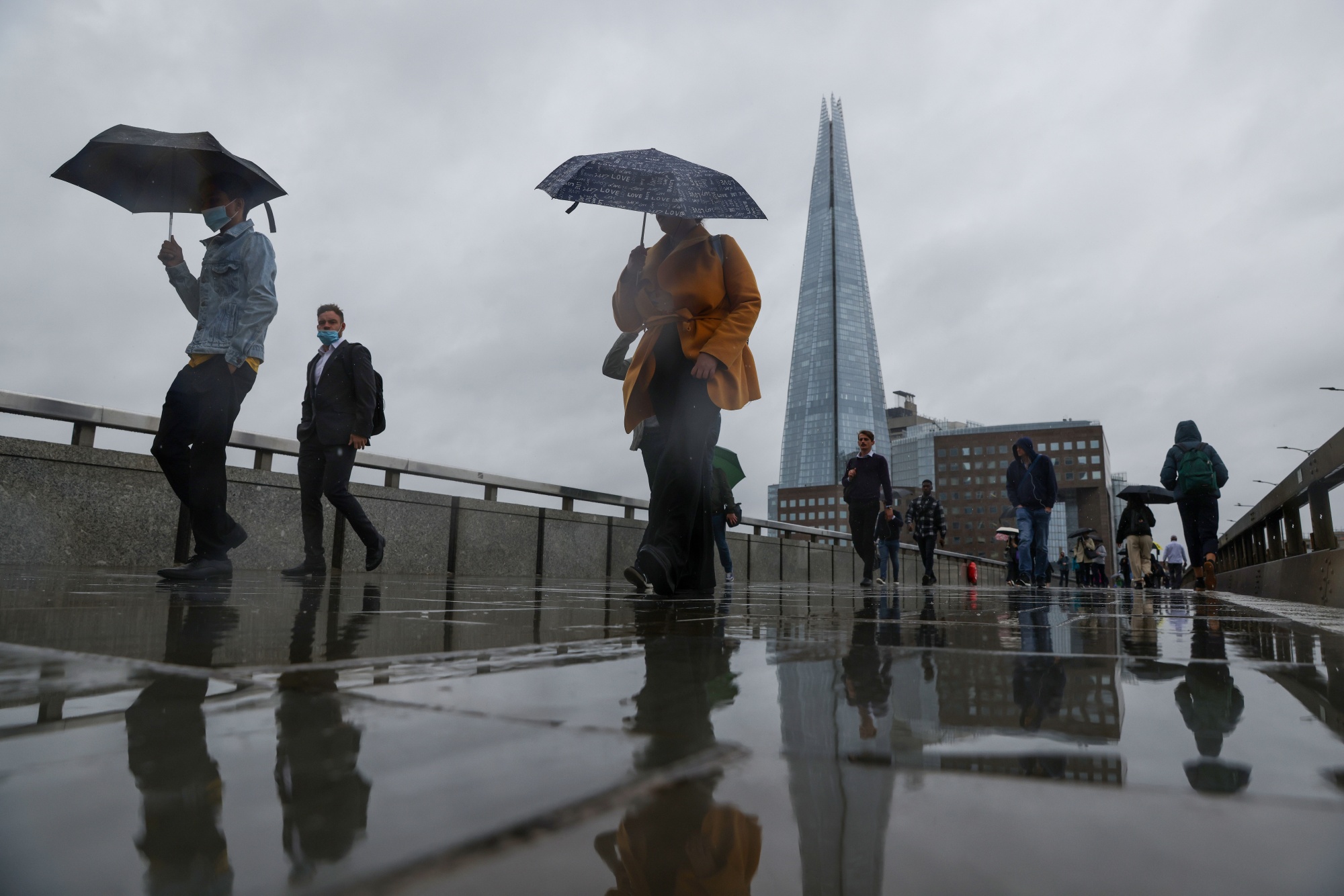 伦敦桥上的雨中通勤者。摄影师:霍利·亚当斯/彭博社文件揭示了环境局对该国水资源进行的压力测试。上个月的分析称,“需要在冬季持续降雨高于平均水平,才能在明年春季前将所有供水恢复到正常状态。”
