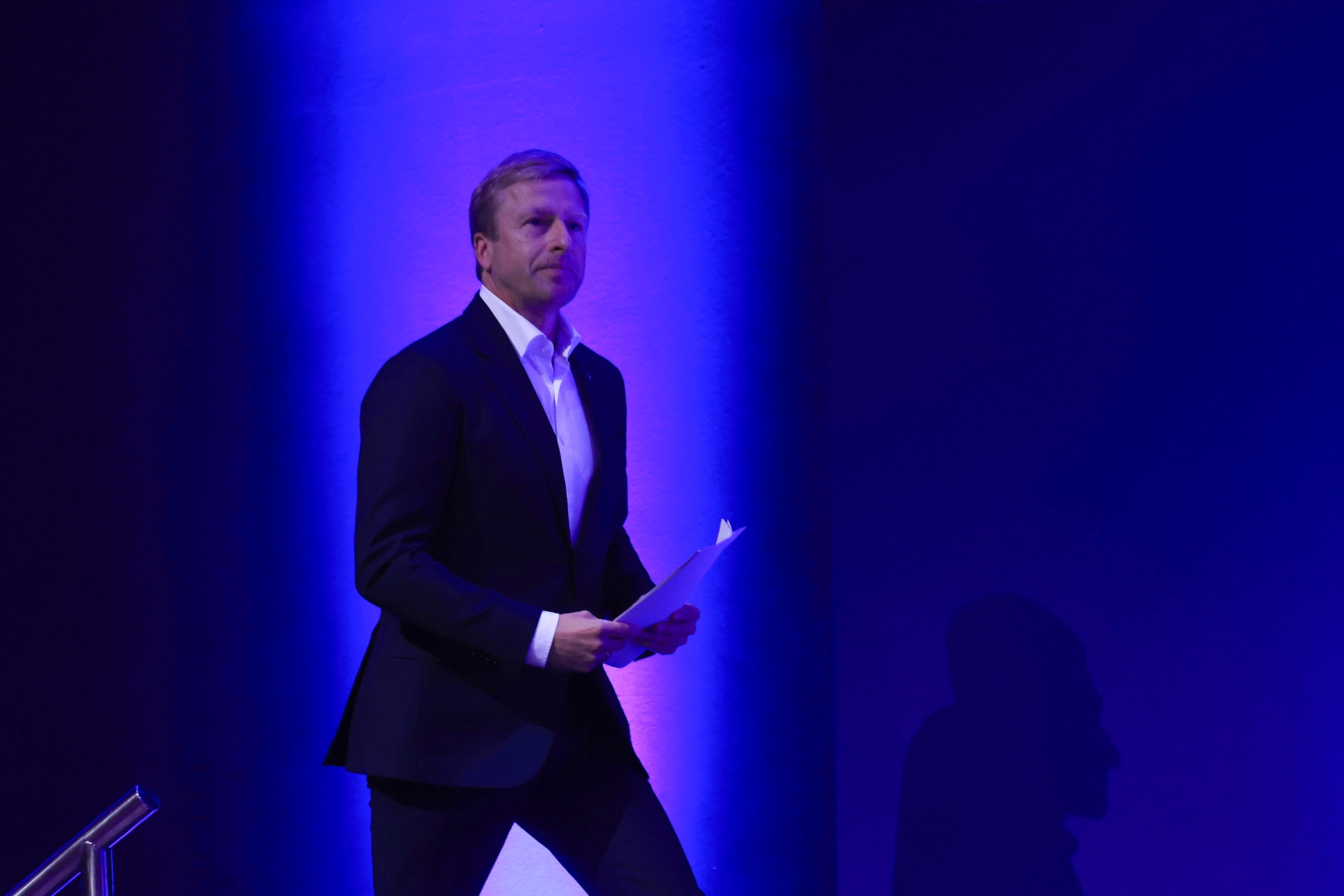 在台上,交通部长沃尔克·维辛向政策制定者和行业高管们宣讲了“技术开放性”在减少交通排放中的重要性。