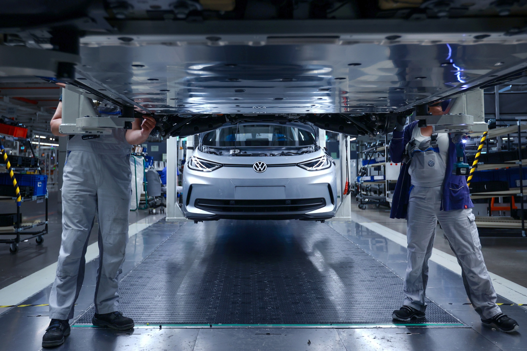 VW ID.3和Cupra Born电动轿车在大众萨克森有限责任公司工厂的装配线。摄影师:Krisztian Bocsi/Bloomberg汽车制造商已经开始押注。大众的Audi品牌正在精简其电动汽车阵容,而大众正在放慢其出售电池部门股份的计划。如果电动汽车增长放缓演变为长期低迷,可能会削弱行业数十亿美元的投资,并意味着汽车制造商无法跟上围绕降低排放的新法规。