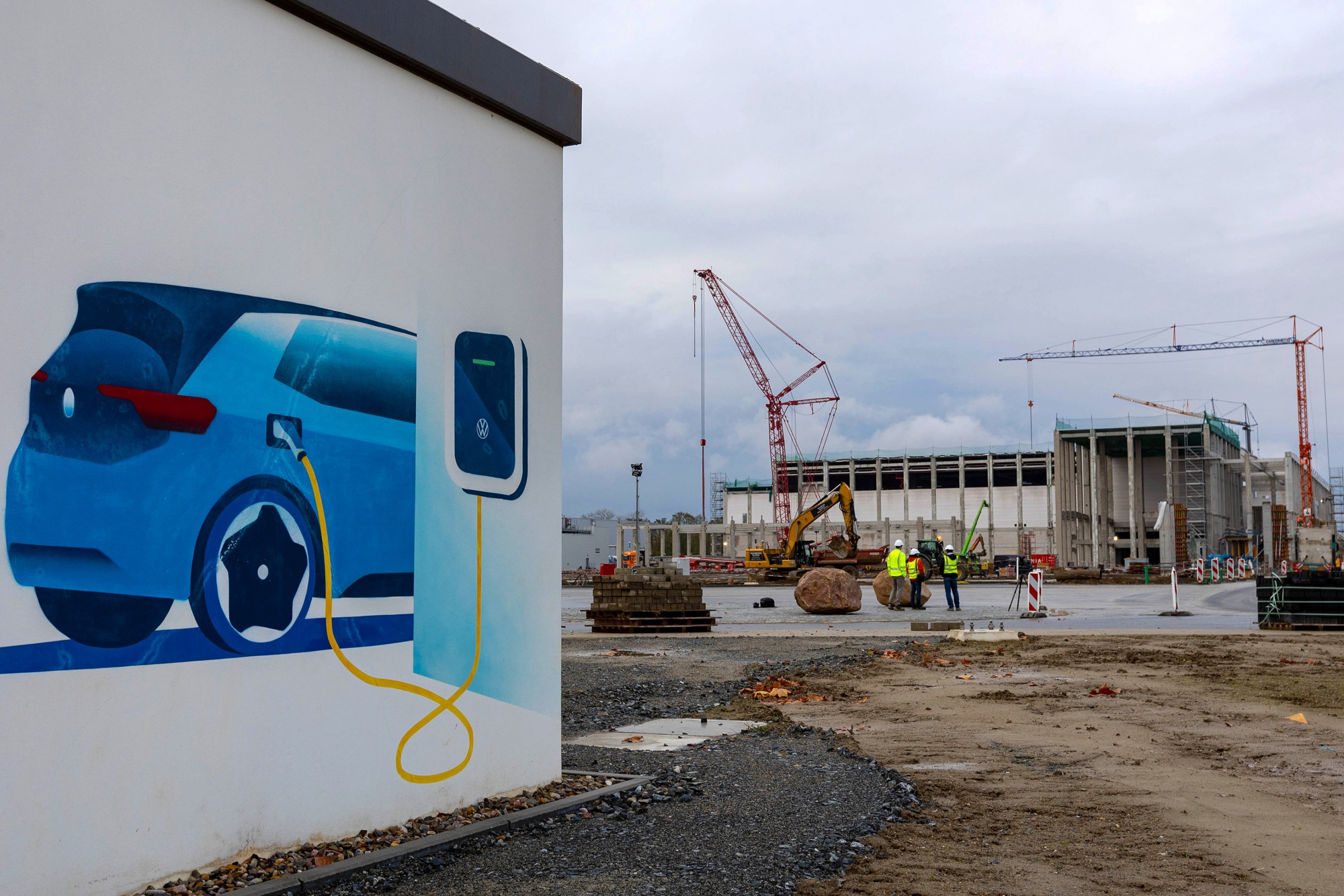 大众汽车股份有限公司SalzGiga电池电池超级工厂的建设工地,位于萨尔茨吉特。照片:Krisztian Bocsi/Bloomberg根据VDA的数据,以目前的建设速度,德国需要将其速度提高三倍才能实现2030年的目标。