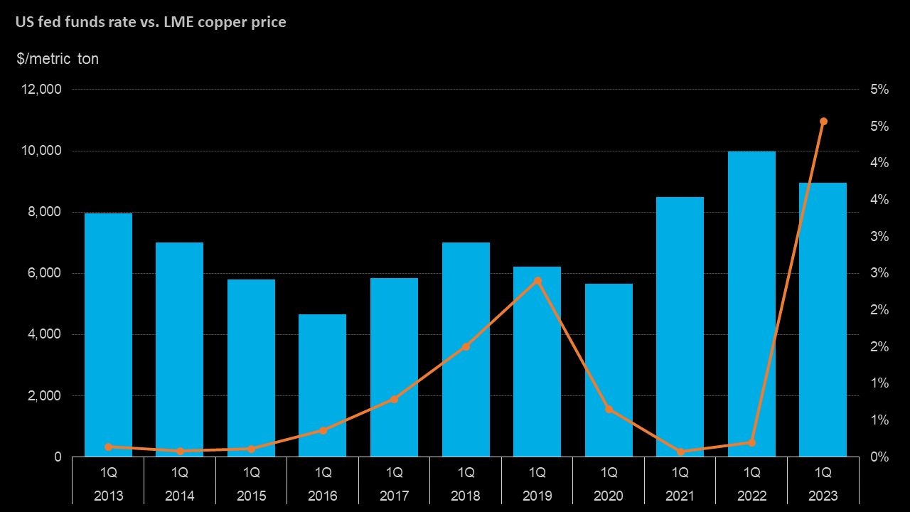 伊凡霍伊矿业有限公司的亿万富翁创始人罗伯特·弗里德兰最近表示,如果利率下降并且来自中国的需求增加,他不会感到惊讶,今年铜价可能攀升至每吨9500美元。