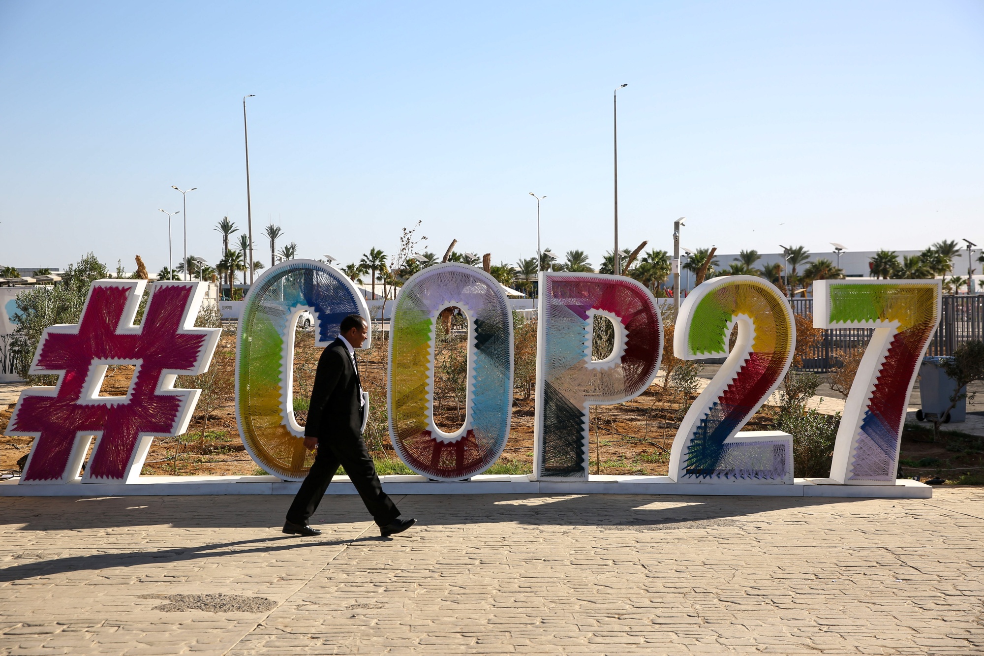 在COP27大会上,约45000名与会者在埃及炎热的阳光下穿梭于过度空调的会议厅之间参加会议和专题讨论。