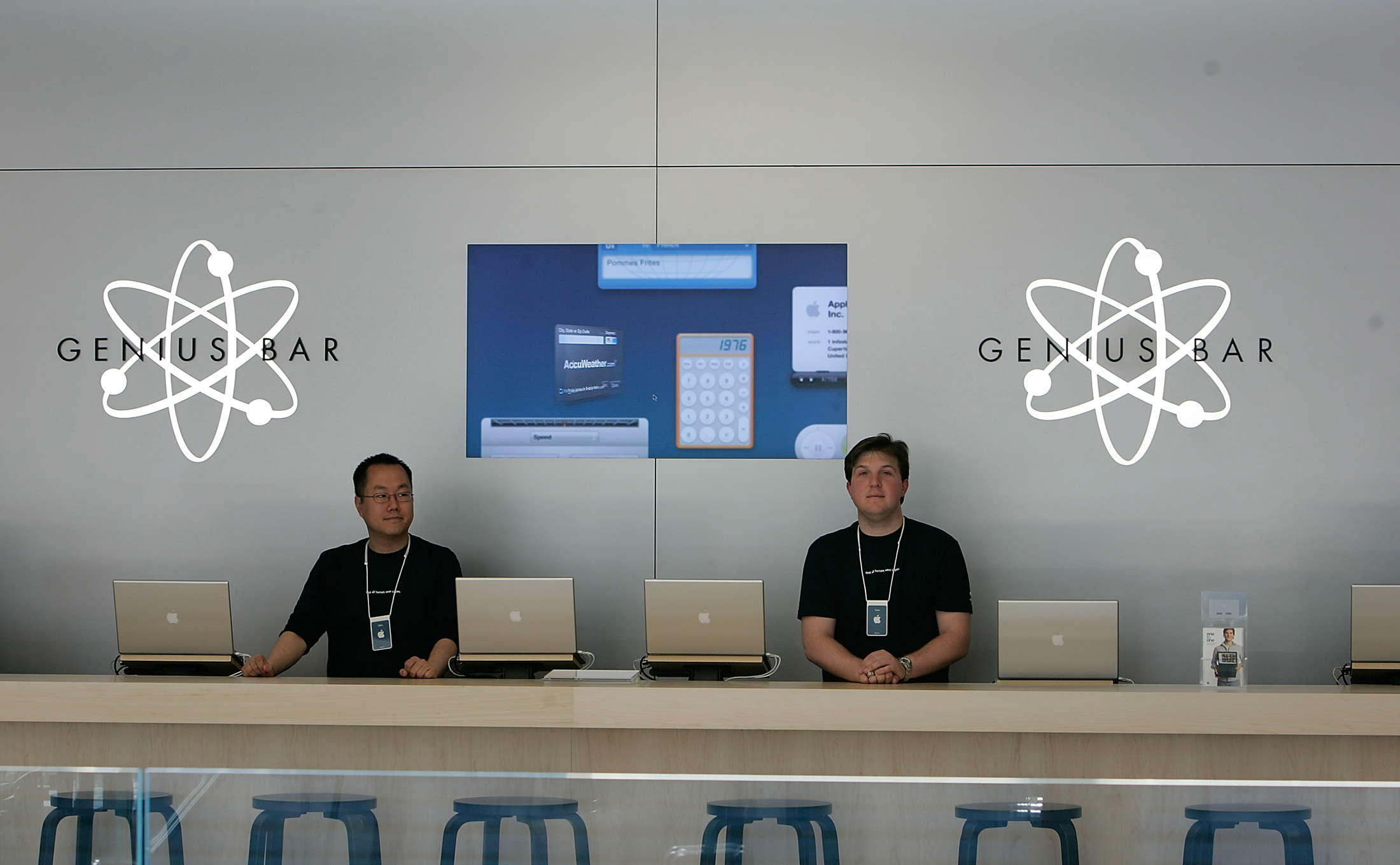 当然,还有 Genius Bar,一个在过去的二十年中一直被视为由一群友好、乐于助人的书呆子推动的个人礼宾服务中心。 Genius Bar 的员工通常被信任解决您的问题,如果可能的话修理您的手机,免费更换某些坏掉的耳机。在至少一个案例中,今年春天在一个病毒性 TikTok 视频中记录下来,一位专门的员工给一个零观众的编程课,希望有人会来学习。直到今天,陌生人仍然会在看到苹果标志的蓝色 T 恤的地方拦住下班的 Genius 寻求帮助。