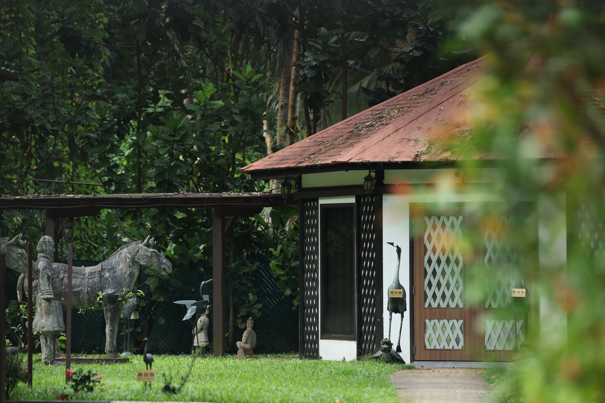 走过挂满葡萄酒瓶的接待处,访客进入一个两层高的藤椅和桌子的休息室,银行家和加密企业家在这里聚集。真正有关联的人会被引导穿过花园小径,经过兵马俑的再现,来到一个有着站在乌龟上的鹤雕像的亭子,这在中国文化中象征着长寿。