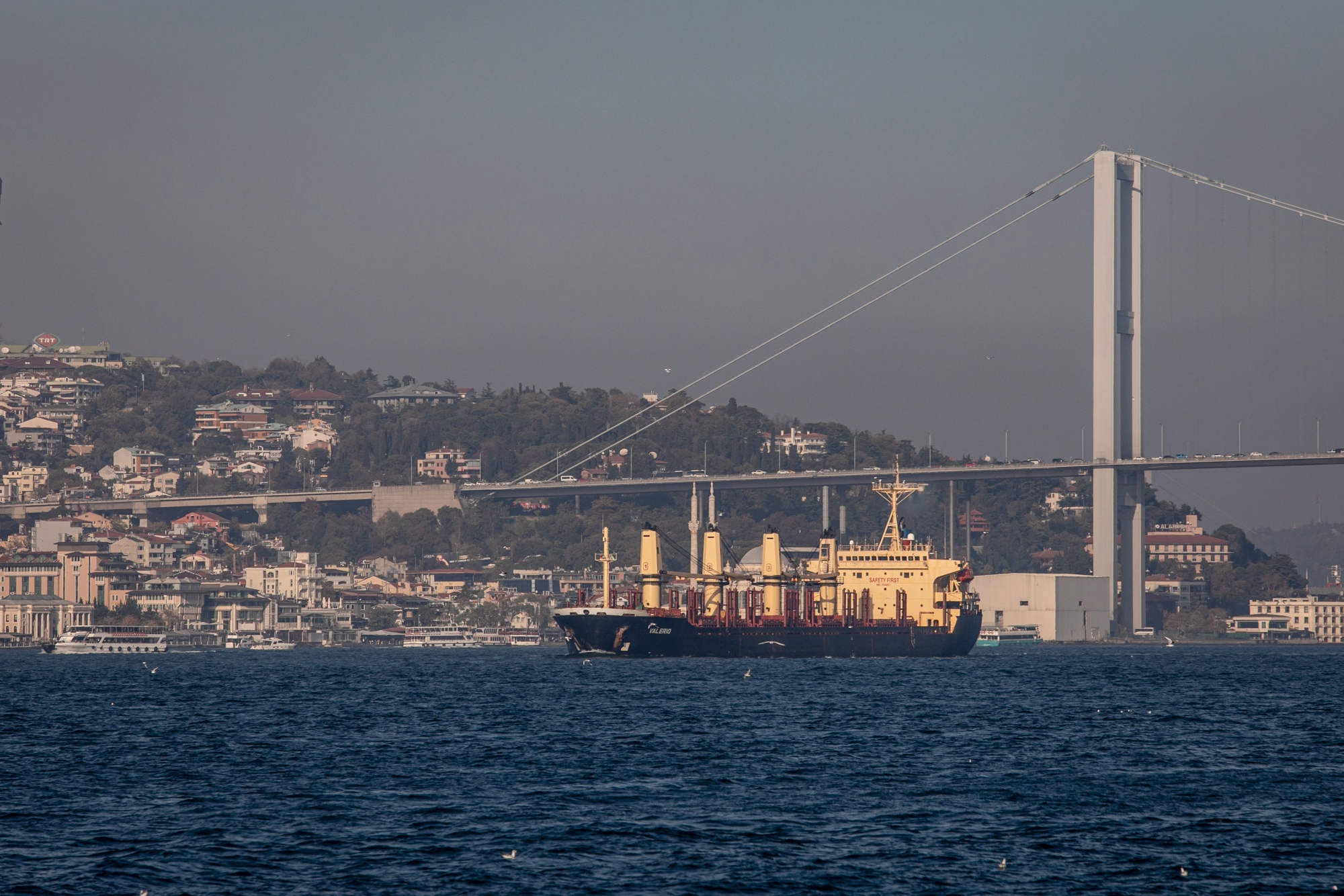 一艘载有乌克兰人的船只在伊斯坦布尔博斯普鲁斯海峡上。摄影师:Nicole Tung/Bloomberg
