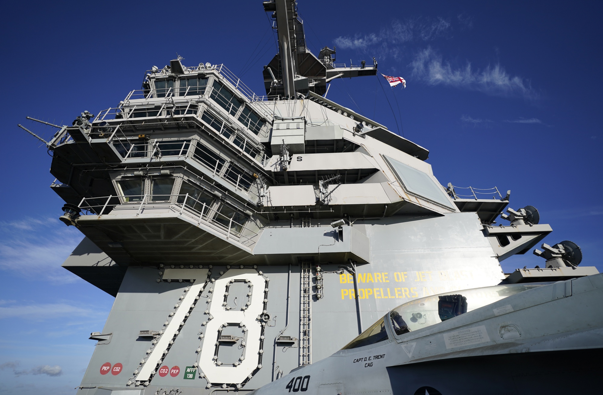 这艘耗资128亿美元(约108亿英镑)建造的巨型战舰正在访问,以让其4500名船员在汉普郡的朴次茅斯和伦敦享受一段“自由”时间。