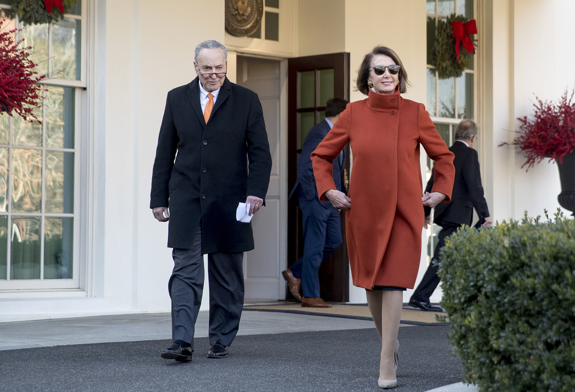 佩洛西和查克·舒默在2018年12月与特朗普会面后走出西翼。摄影师:Andrew Harnik/AP Photo佩洛西为一代女性立法者铺平了道路,其中许多人现在担任着权力职位。当她在1987年加入众议院时,有12名民主党女性。“现在有90名,我们希望有更多,”她在周四说。