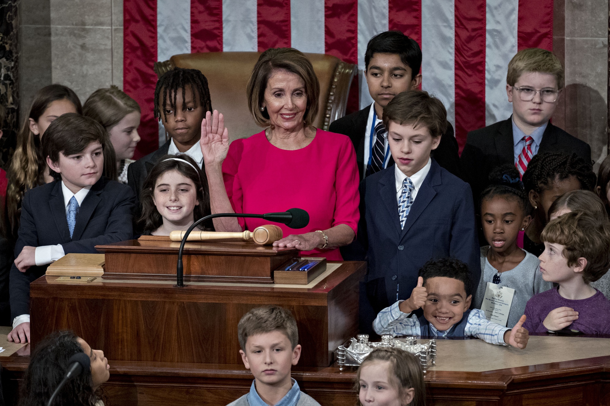 佩洛西在2019年1月的华盛顿举行的仪式上,被众议员的子女和孙子女包围着宣誓就职。摄影师:Andrew Harrer/Bloomberg“她扩大了领导者的形象,打破了领导者的形象,并为各种人打开了大门,让他们走进来并担任这些职位,”罗格斯大学美国妇女与政治中心主任黛比·沃尔什补充道。