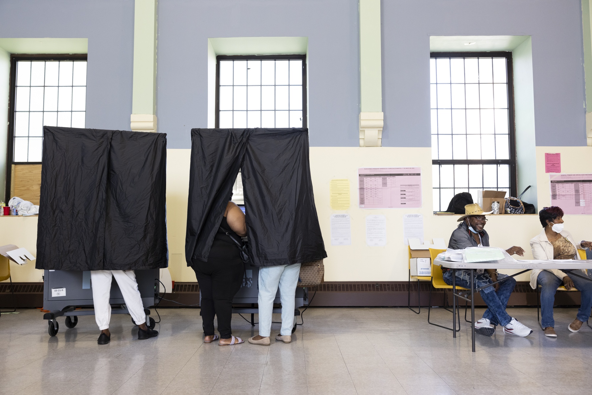 选民在宾夕法尼亚州费城的投票地点投票。
