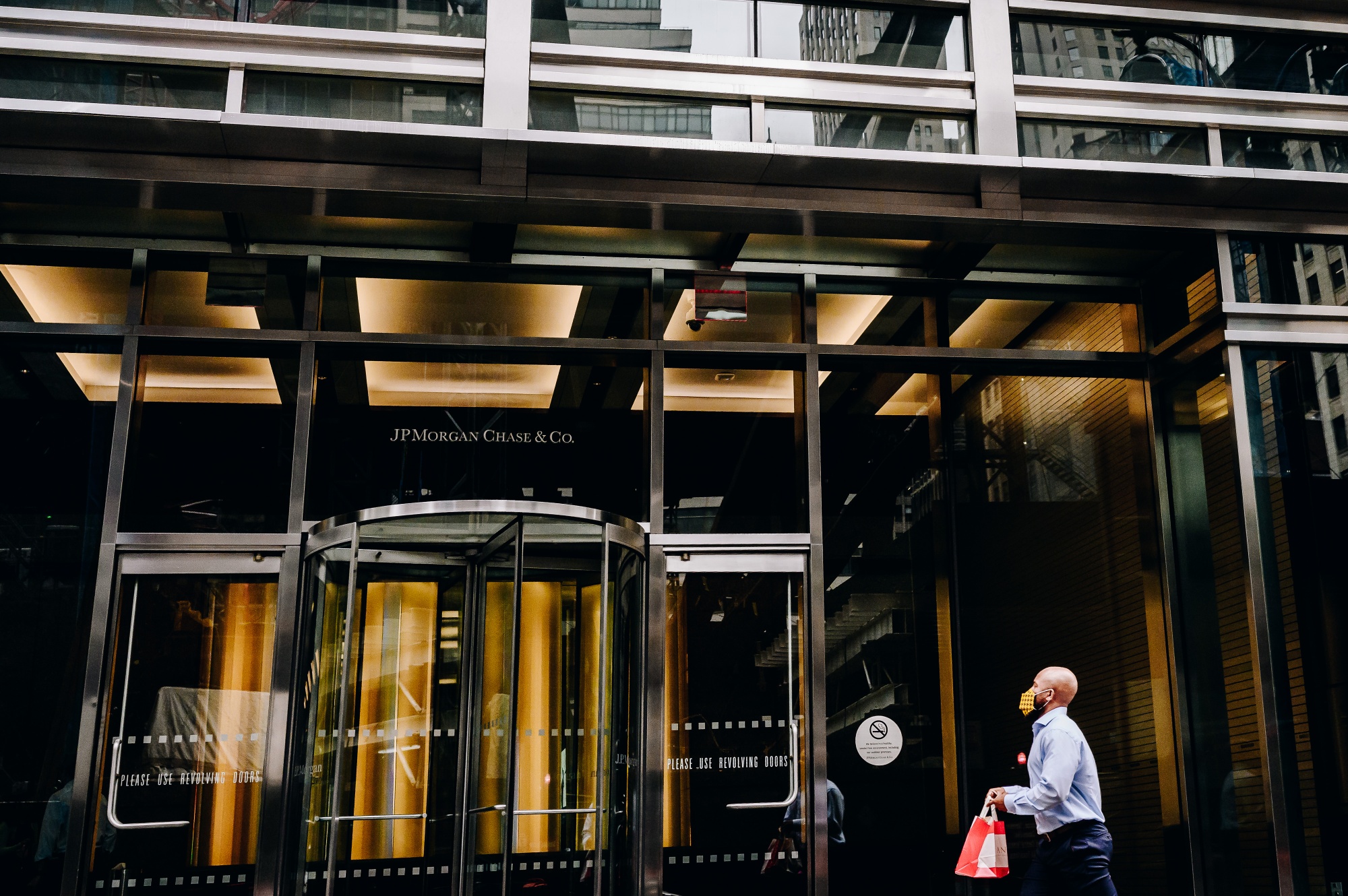 在纽约摄影师尼娜·韦斯特维尔特(Nina Westervelt)拍摄的摩根大通公司总部外。
