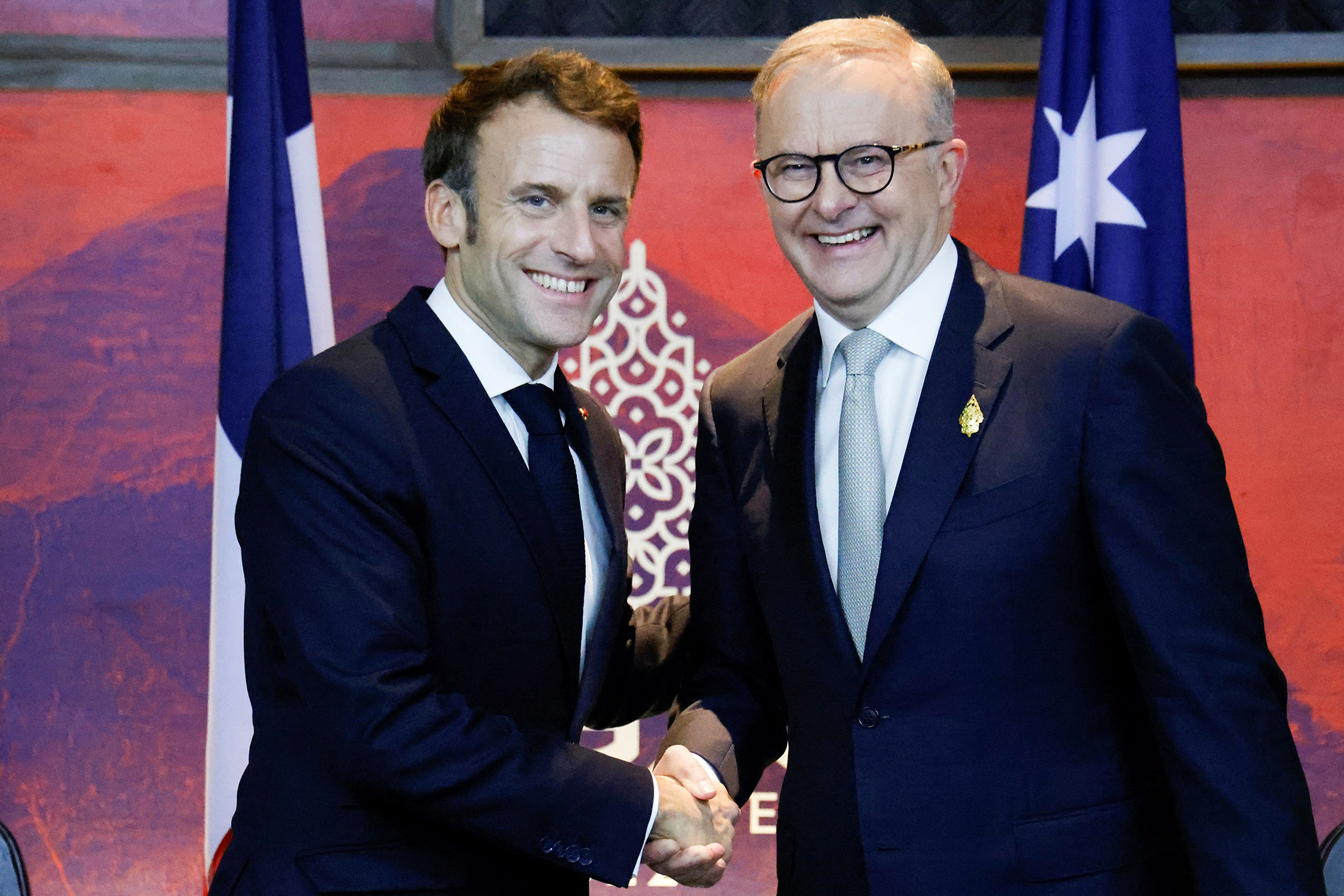 自从安东尼·阿尔班尼斯中左翼工党政府于5月上台以来,澳大利亚和法国之间的关系有所恢复。马克龙表示,他在巴厘岛举行的二十国集团会议上与阿尔班尼斯进行了“非常好的讨论”。