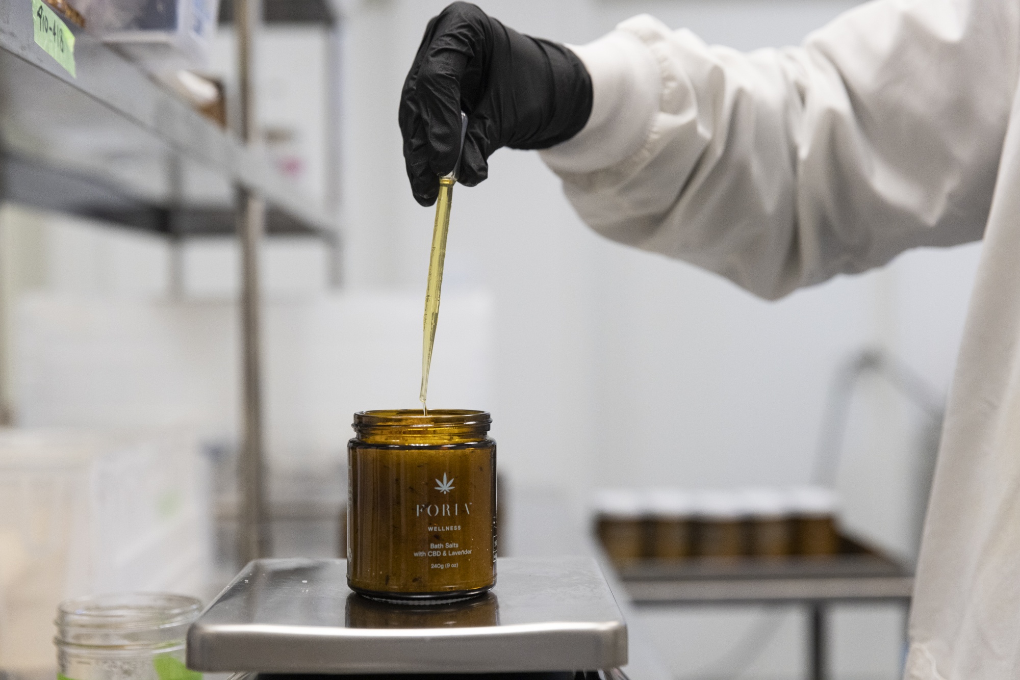 一名工人将CBD油滴入一罐浴盐中。摄影师:安格斯·莫丹特/彭博社并非每个农场都像哈德森大麻那样,拥有丰厚的资金支持,梅兰妮和本仅两人之间就有着十年的经验。该公司还将大片土地租给附近的农民放牧草饲牛和山羊。道布森一家对能够度过从收获到零售药店第一次破土动工之间的波折时期感到乐观。