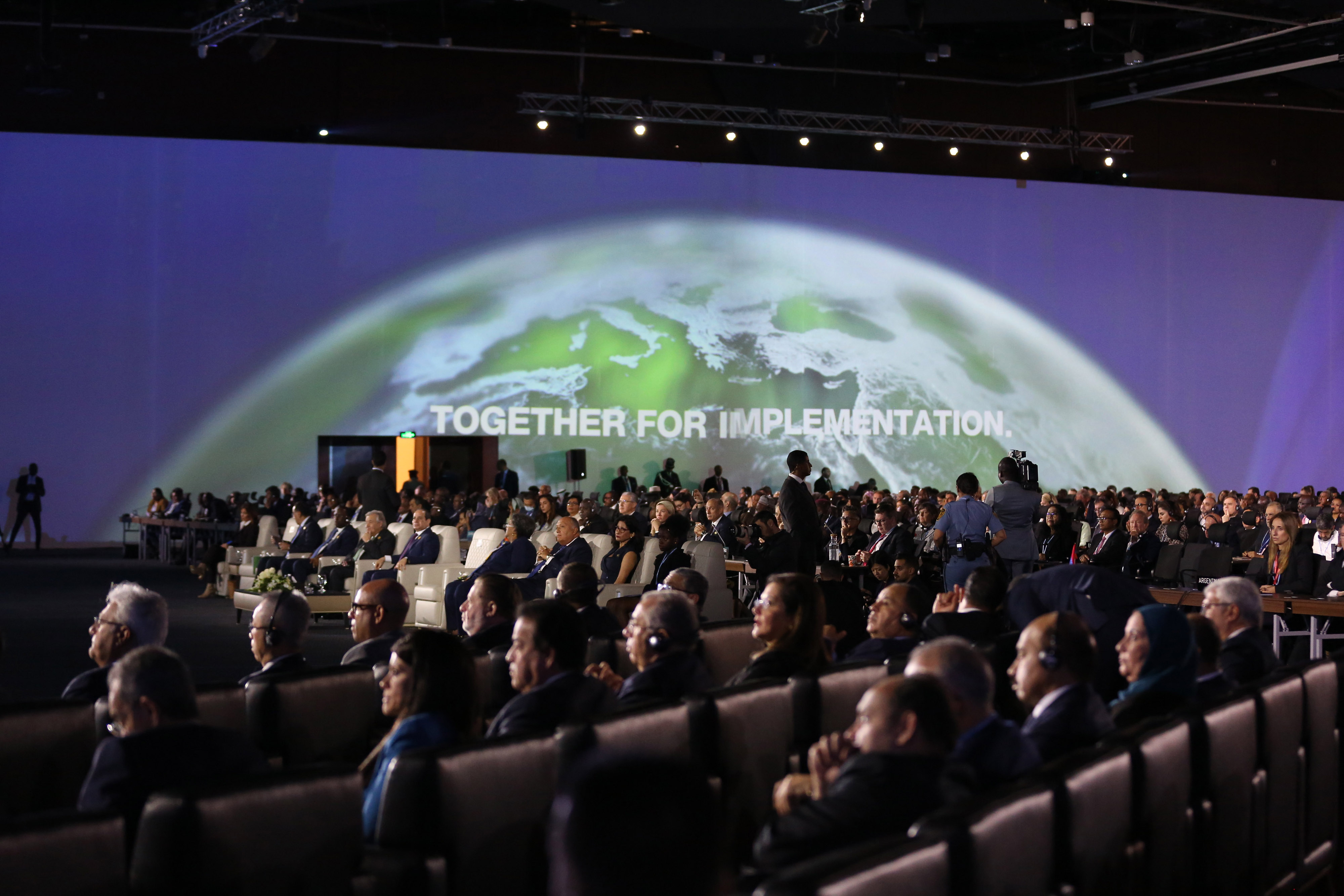 代表们参加了11月7日在埃及沙姆沙伊赫举行的COP27气候大会的全体会议。摄影师:Islam Safwat/Bloomberg埃及举行的COP27气候谈判在周六早上似乎濒临崩溃,但在一项有关向较贫困国家支付全球变暖造成损害的具有里程碑意义的协议取得进展后,最终有望达成最后一刻的协议。
