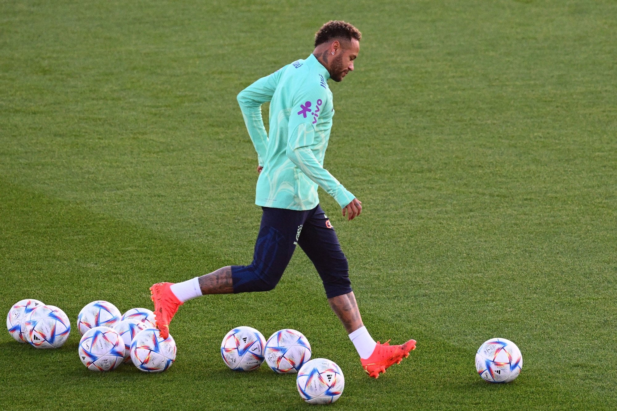 巴西的内马尔在都灵进行世界杯卡塔尔赛前的训练。