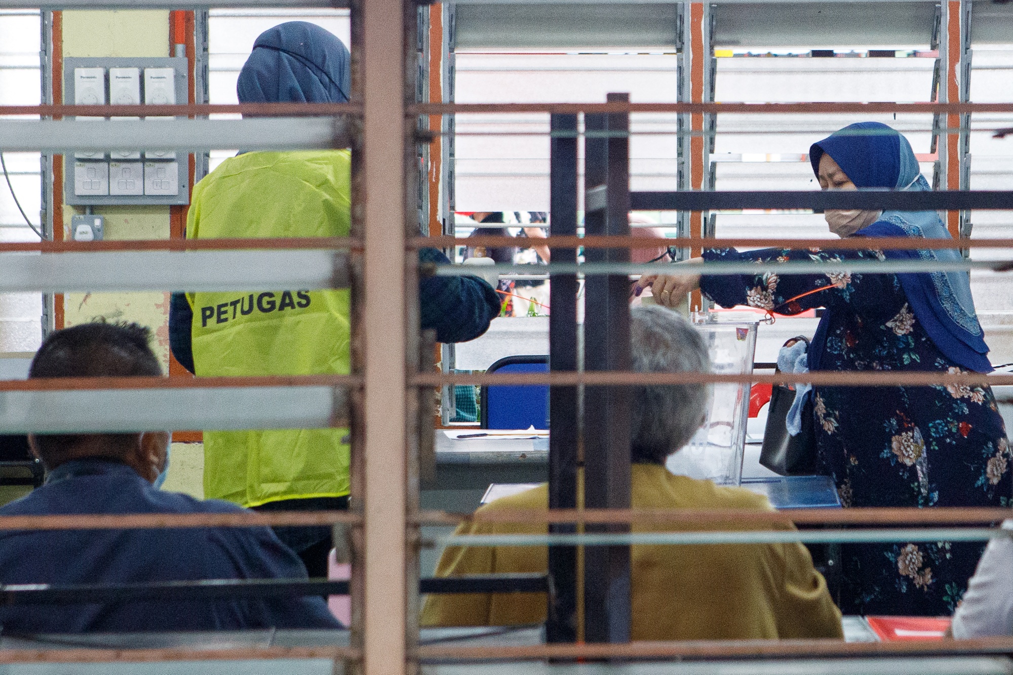 一名选民在马来西亚雪兰莪州沙亚南投票,日期为11月19日。
