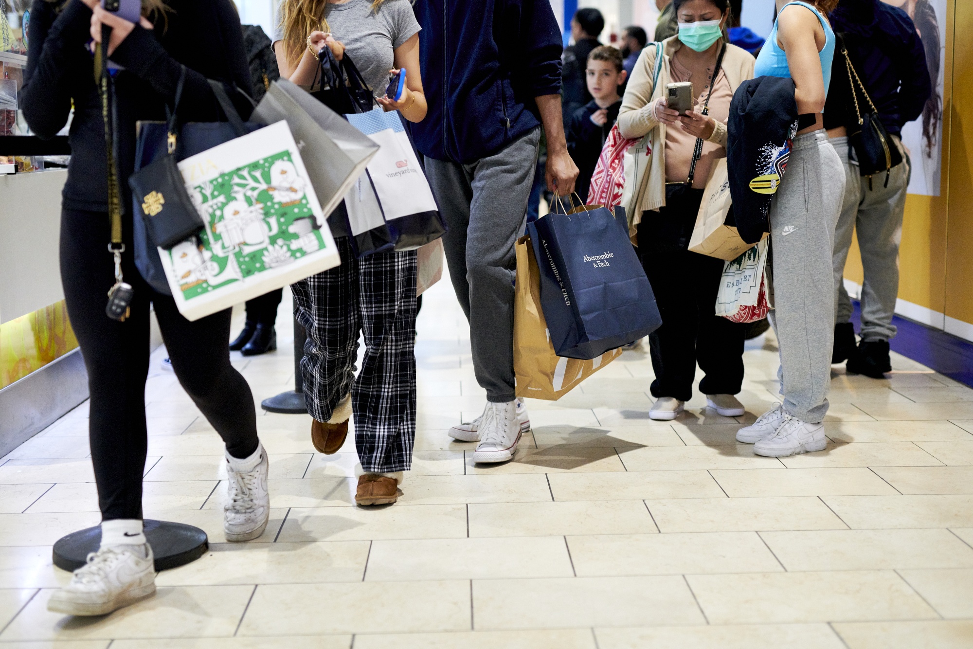 购物者在美国新泽西州帕拉默斯的Westfield Garden State Plaza购物中心度过黑色星期五,日期为2021年11月26日。