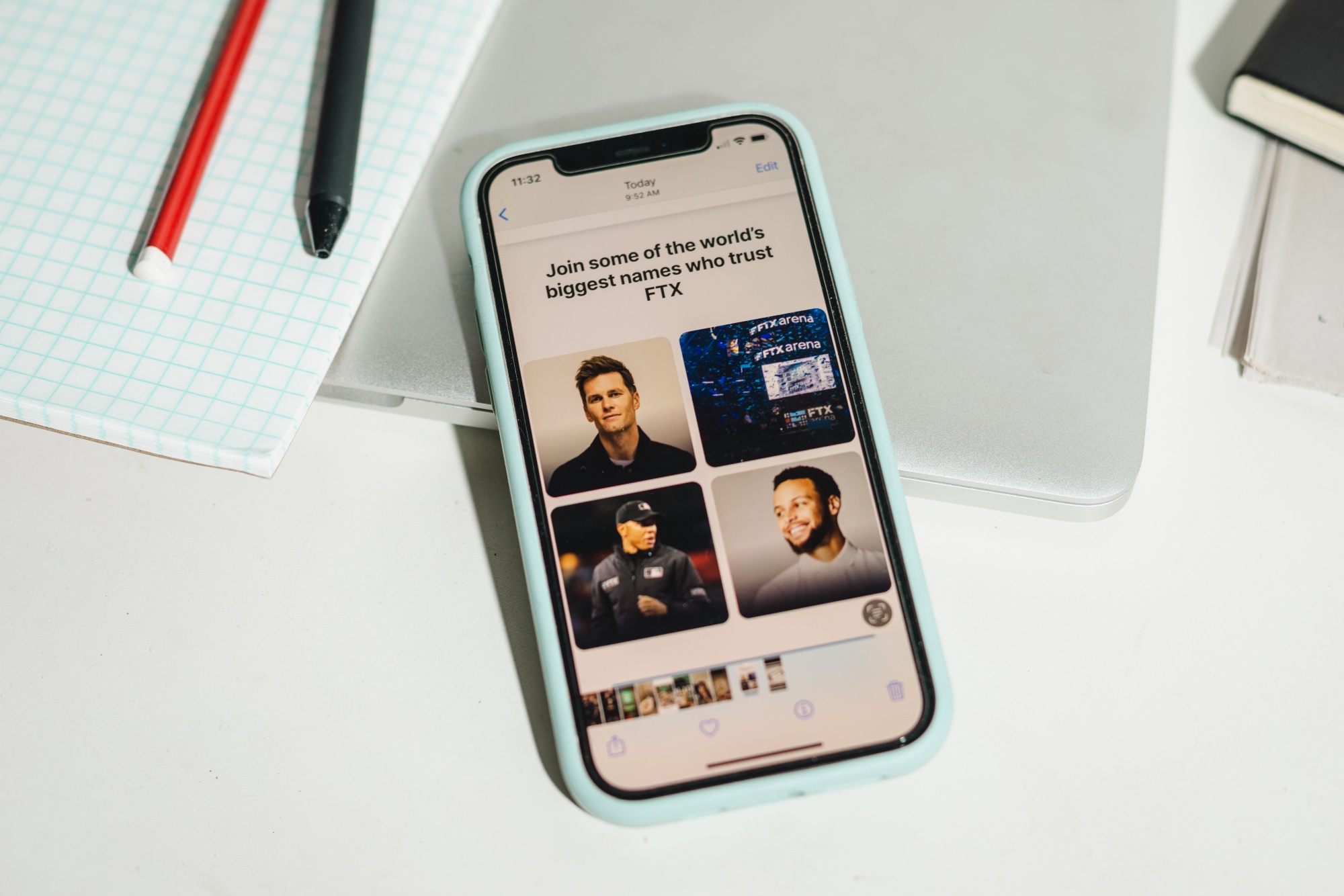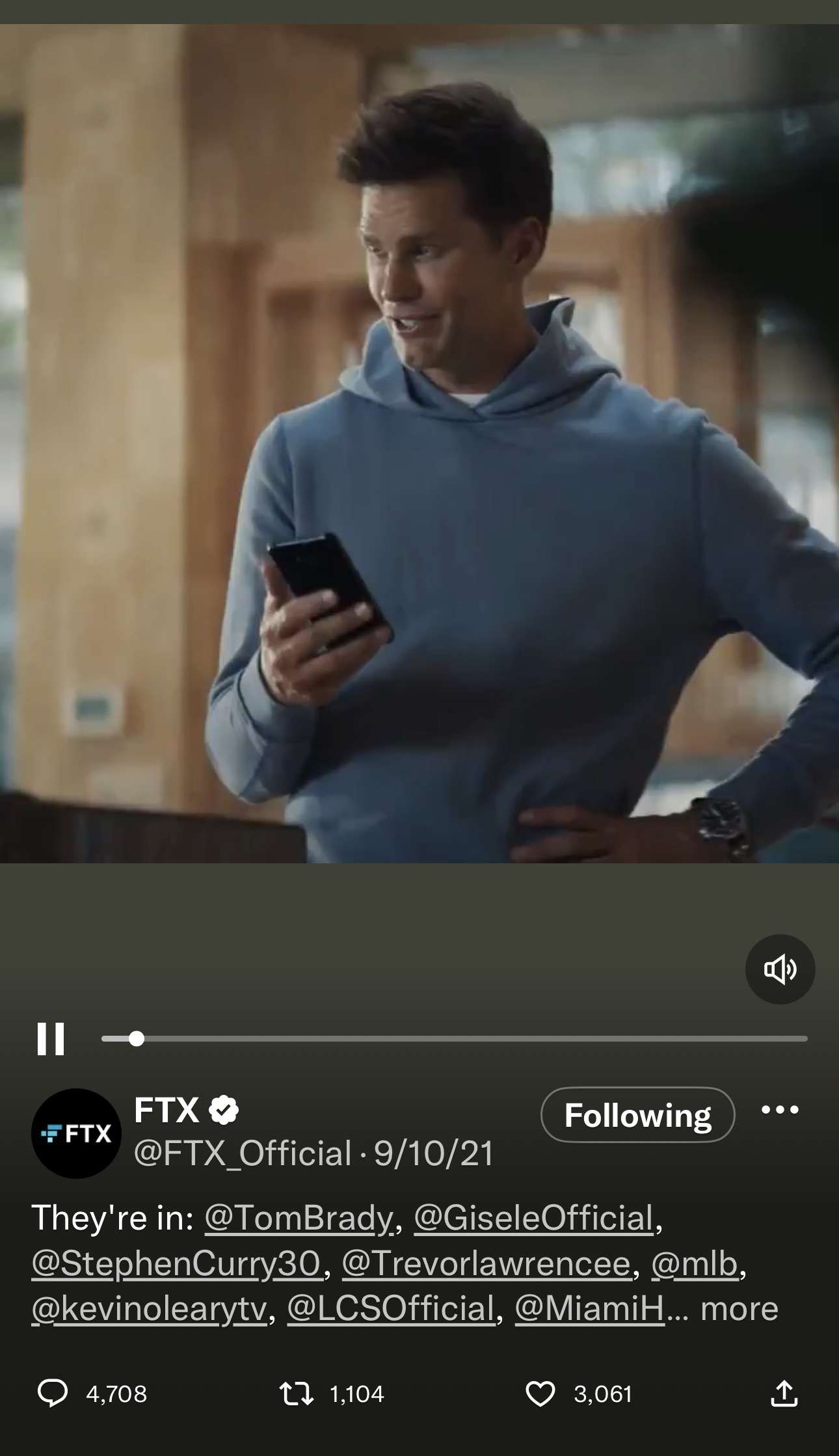 最引人注目的广告之一是FTX的广告,“汤姆·布雷迪在内。你呢?”,在这则广告中,足球明星汤姆·布雷迪和他当时的妻子吉赛尔·邦辰鼓励朋友和熟人使用这个交易平台。