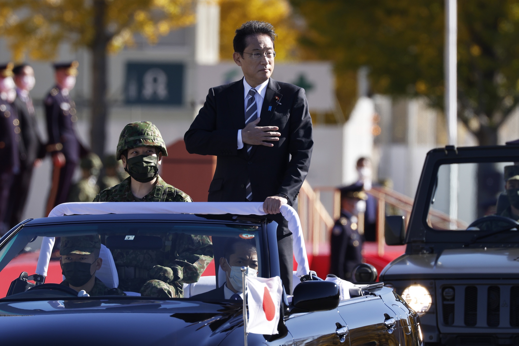 菲米奥·岸田在2021年检阅日本自卫队部队。摄影师:Kiyoshi Ota/Bloomberg