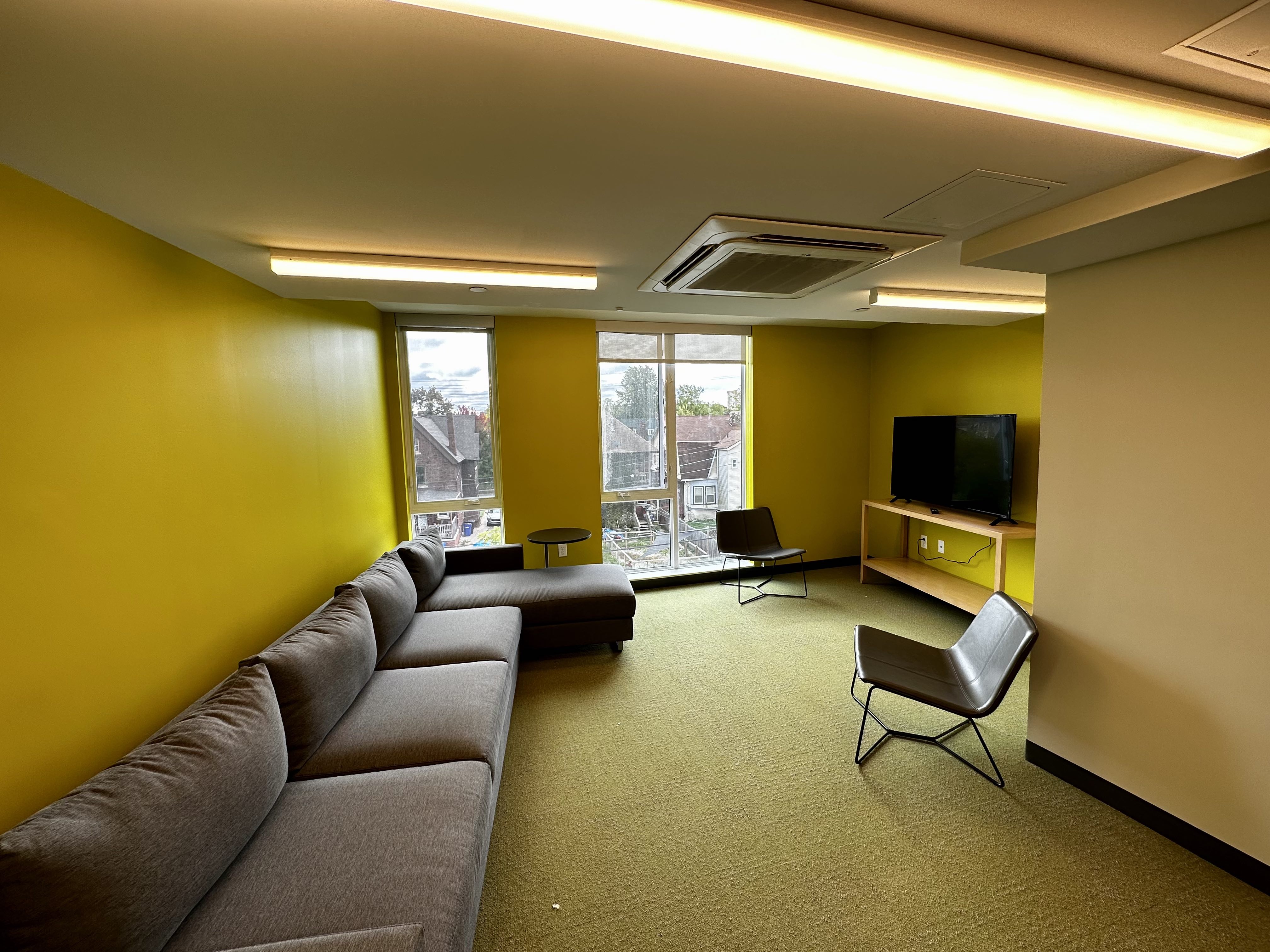 建筑的私人空间——上部的住宅楼层——拥有任何新的市场租金公寓楼都会看到的设施,包括配备沙发的休息室、一个共用厨房、健身房、艺术工作室、一个室外露台和绿色屋顶。但这些细节是根据未来居民的需求塑造的。为了帮助克莱蒙特中心的设计师们创造出他们整个社区的每个人都感到安全和舒适的空间,鲁思·埃利斯领导层要求他们最脆弱的社区成员之一——有色人种跨性别女性——担任主要客户的角色。