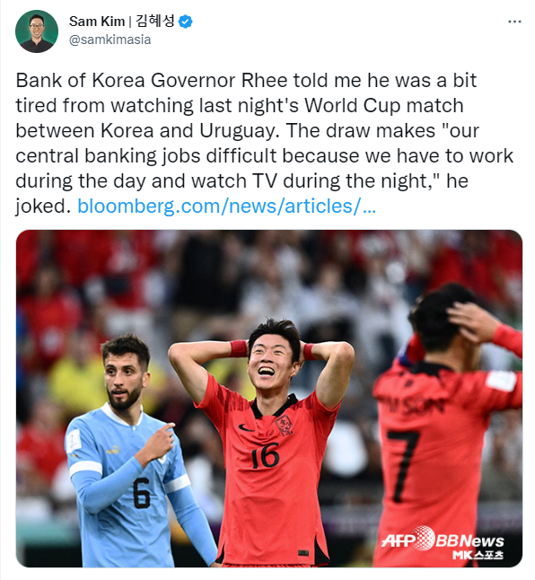 - 韩国采访 | 韩国央行行长李昌镛告诉彭博社,必须看到通胀受到控制的强烈迹象,才能在制定任何远离紧缩的政策之前。