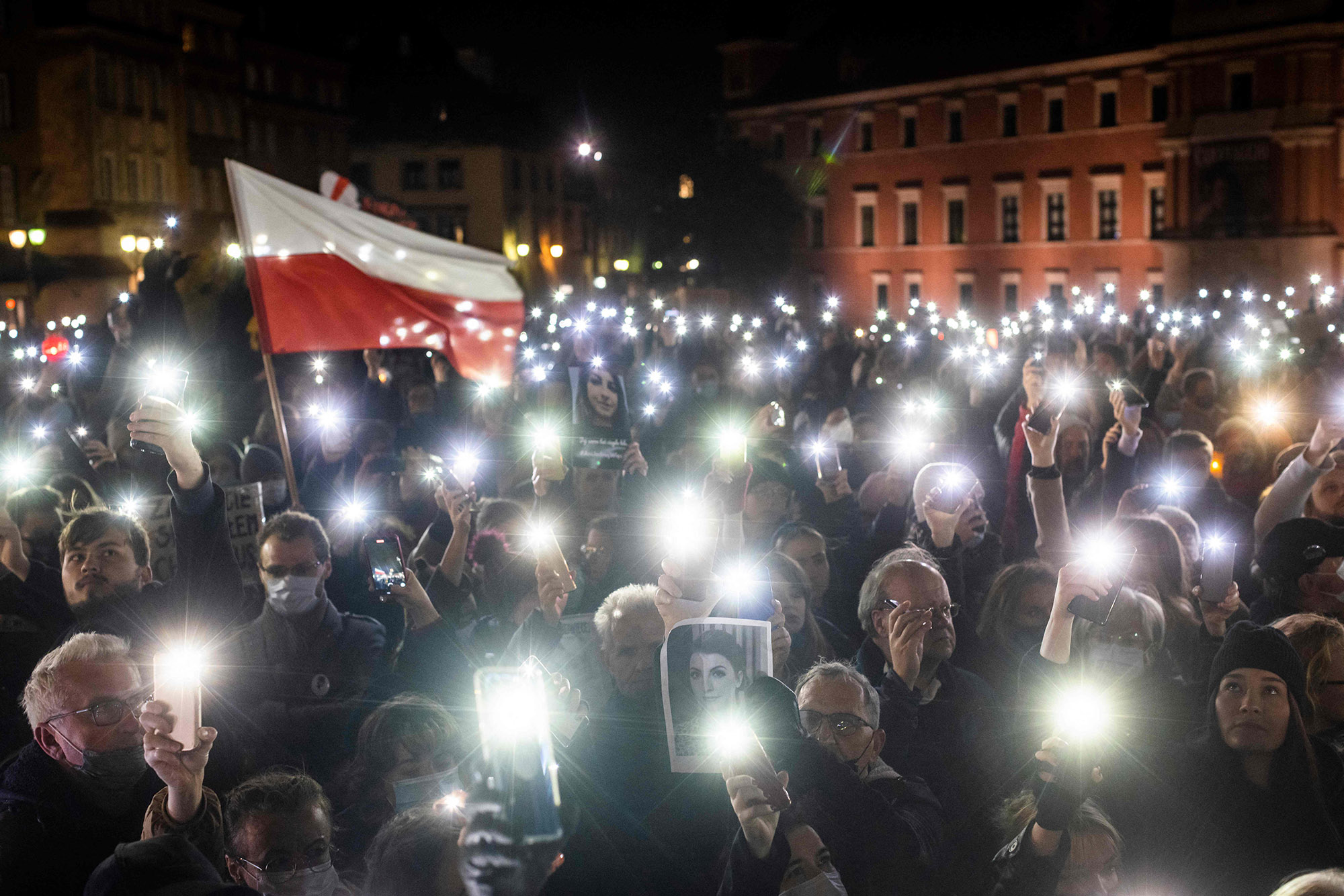 抗议者们纪念宪法法院在2021年实施近乎全面堕胎禁令的第一周年。摄影师:Wojtek Radwanski/AFP/Getty Images