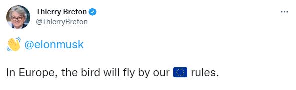 - 欧盟委员警告马斯克Twitter必须“遵守我们的规则”